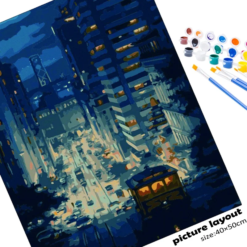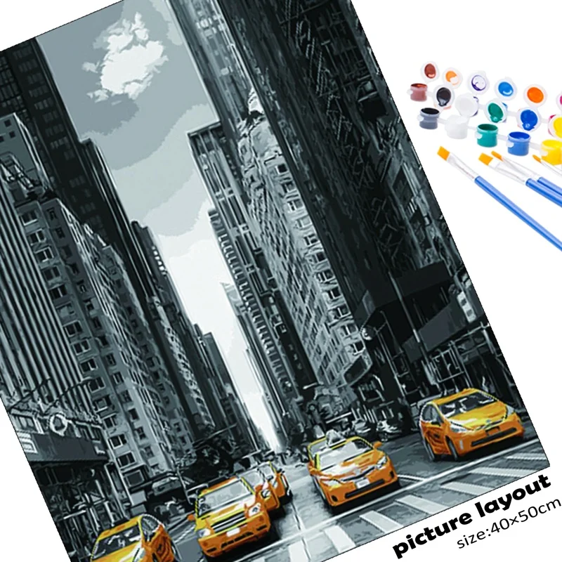 Городской пейзаж Краски ing по номерам Нью-Йорк на холсте DIY Набор...
