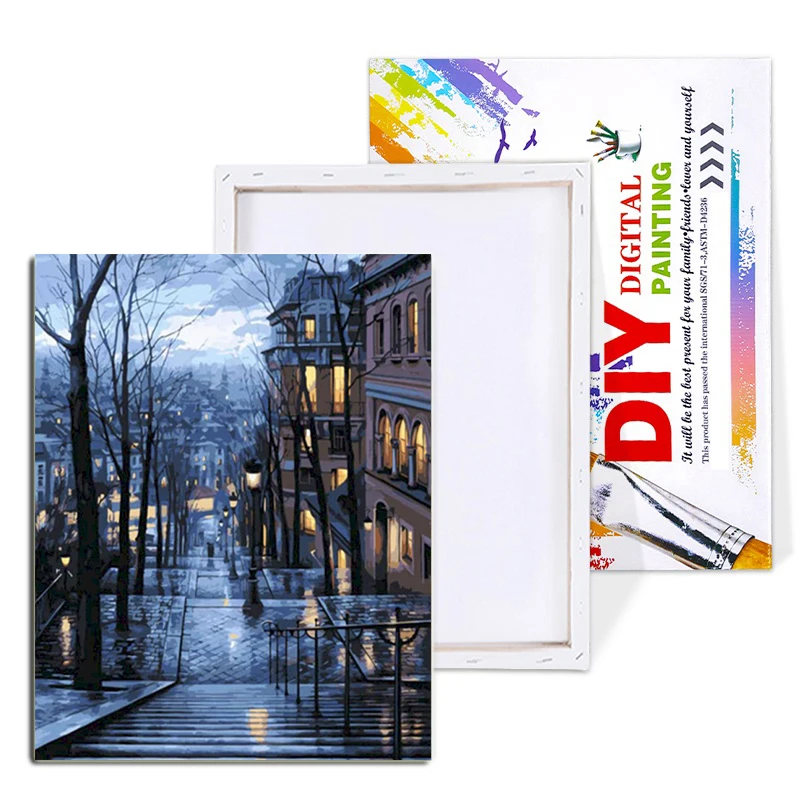 Набор для рисования по номерам пейзаж в рамке, улица Парижа