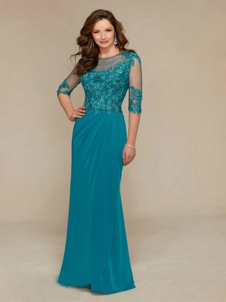 Дешевая напольная плитка Длина 2021 для матери невесты платья 34 с длинным рукавом, кружевные, с бисером, платье для свадебных платьев драгоценный камень вечерние платья с круглым вырезом