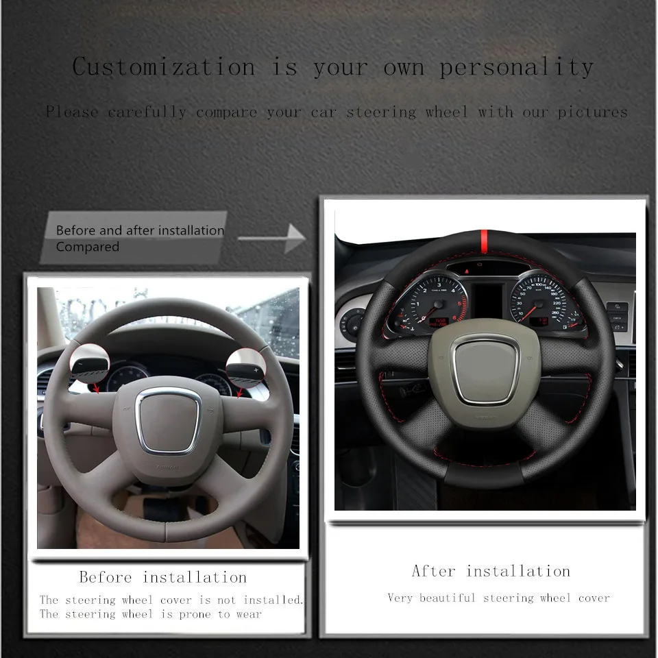 Пожалуйста, проверьте и сравните ваш Автомобильный руль с рулевым колесом на картинке перед покупкой. (наши чехлы на руль являются пользовательским продуктом, если есть какая-либо разница, он не подойдет)! Этот продукт является рулевым покрытием, а не рулевым колесом! Данный товар Подходит для Audi A3 (8P) Sportback A4 (B8) A4 (B7) A6 (C6) Avant с 4 спицами и другие модели 。