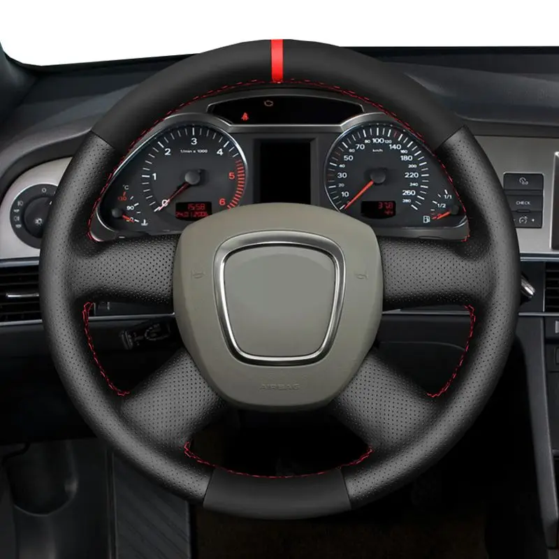 DIY Черный Красный прошитый чехол рулевого колеса автомобиля для Au...