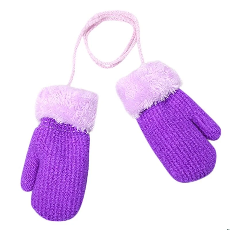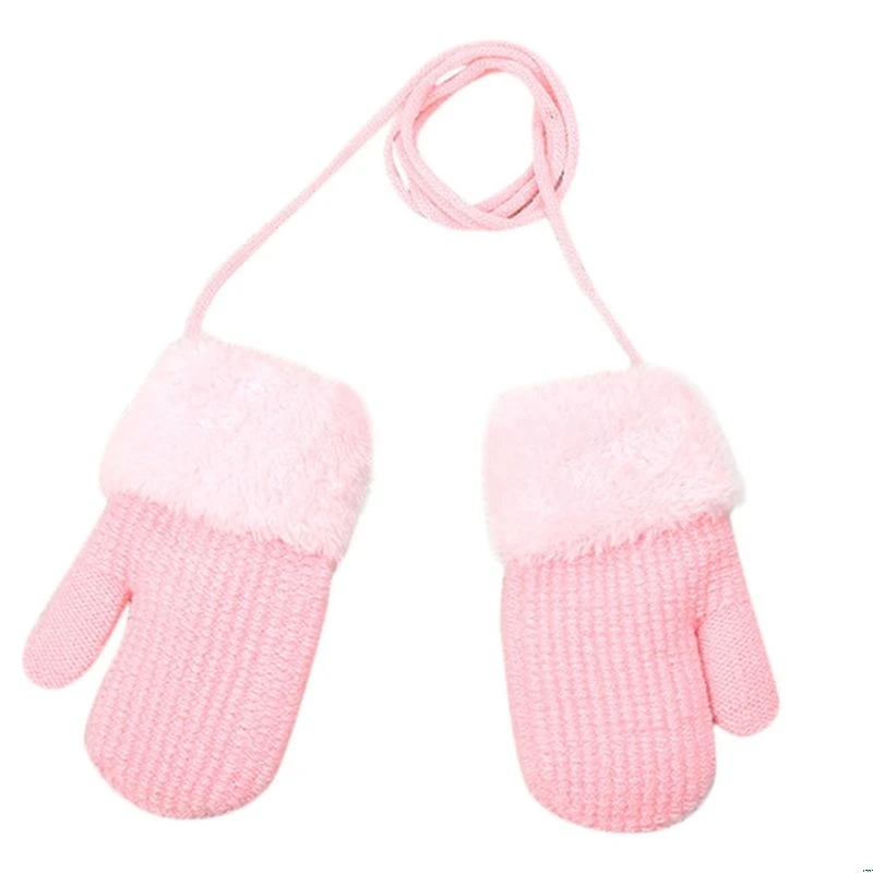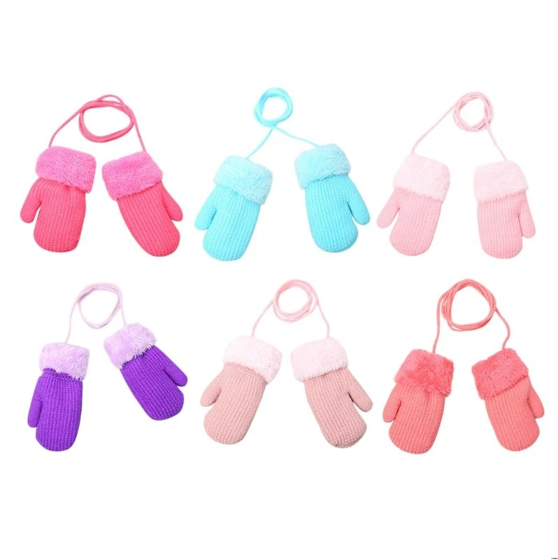 Зимние уличные вязаные перчатки для маленьких мальчиков и девочек, теплые веревочные варежки с пальцами, перчатки для детей, подвесные шейные перчатки для детей