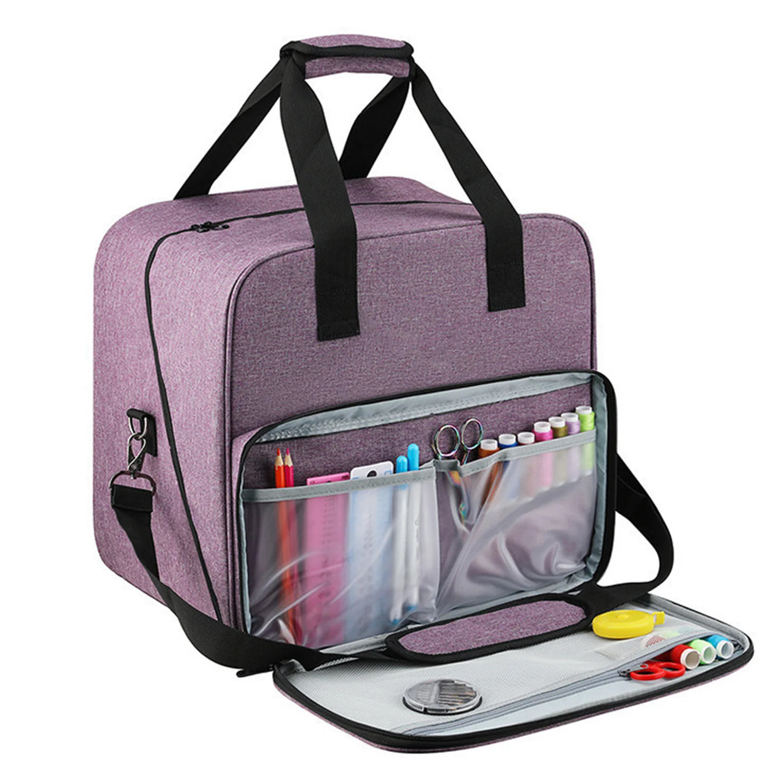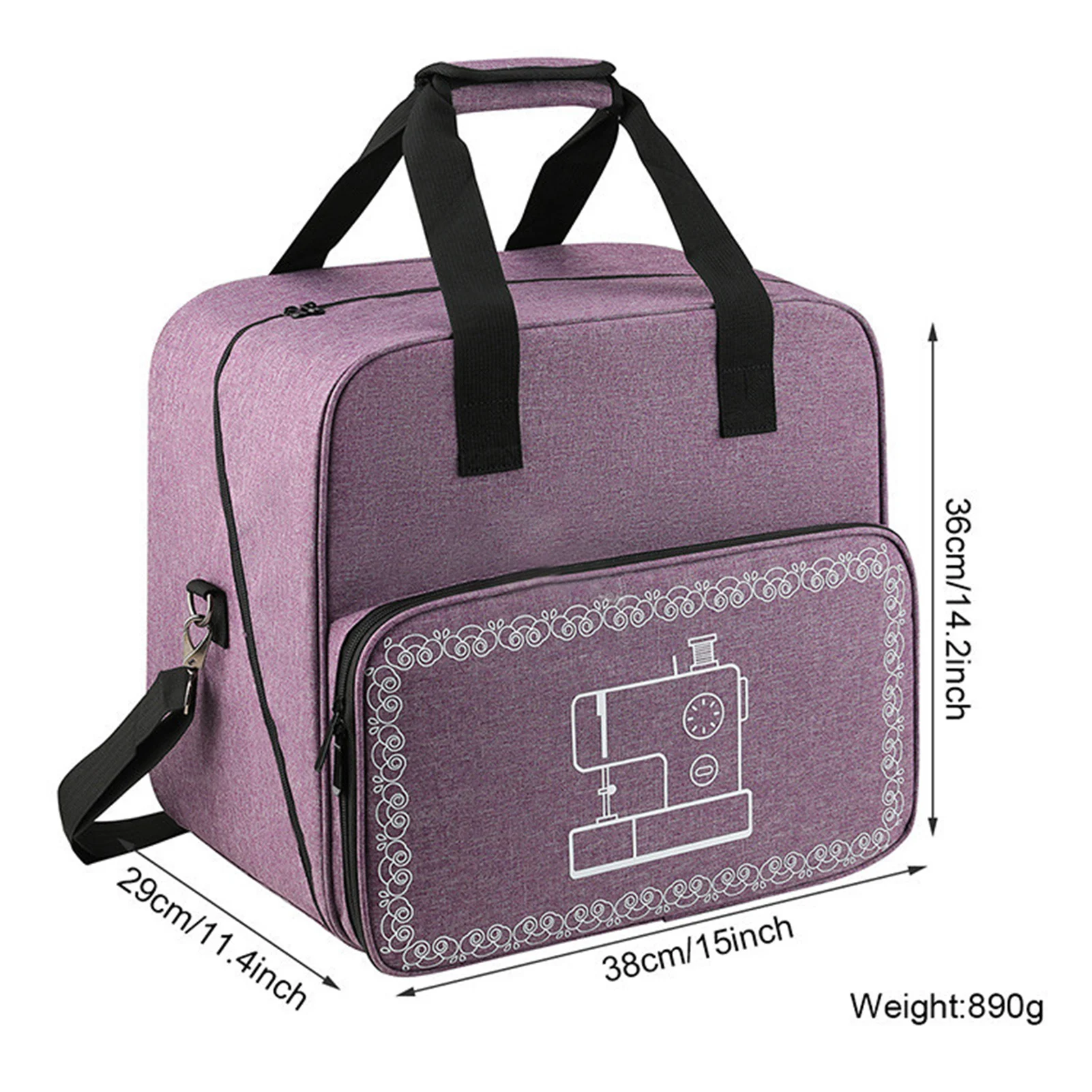 Точки пули:1. Премиум и прочный: Эта сумка для переноски изготовлена из ткани Оксфорд 600D, прочная и многоразовая.2. Легко открывается: Эта сумка имеет 2-стороннюю молнию для легкого доступа к швейной машинке, а 4 основания предотвращают скольжение и царапины, что может поддерживать сумку.3. Легко носить с собой: Эта сумка оснащена мягкой ручкой и съемным регулируемым плечевым ремнем, что позволяет ее легко носить с собой.4. Универсальная сумка для хранения: Эта сумка для швейной машины подходит для большинства стандартных швейных машин, таких как Brother, Singer, Janome и т. д.5. С Карманами: на передней части сумки для швейных машин есть небольшой карман для хранения, поэтому вы можете положить в него катушки, ножницы, линейки и другие мелкие Швейные аксессуары.Характеристики:Название: сумка для переноски швейной машиныМатериал: ткань Оксфорд 600DЦвет: фиолетовый, серыйВес нетто: около 890 гРазмер: около 38*36*29 см/14,96*14,17 * 11.42inУпаковочный лист:Сумка для швейной машины * 1