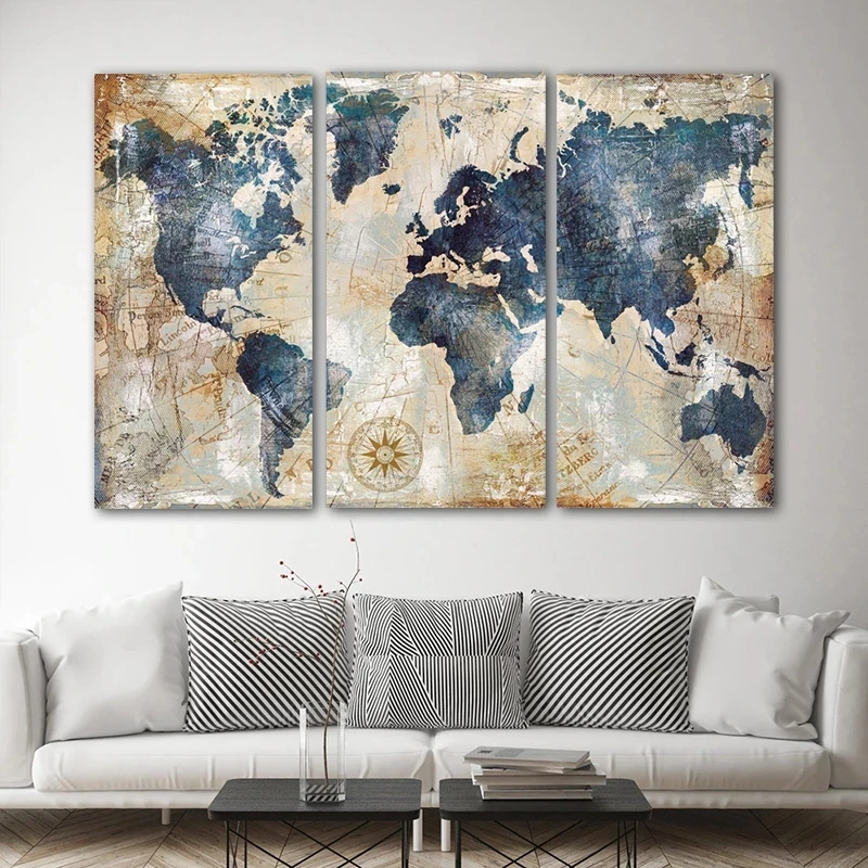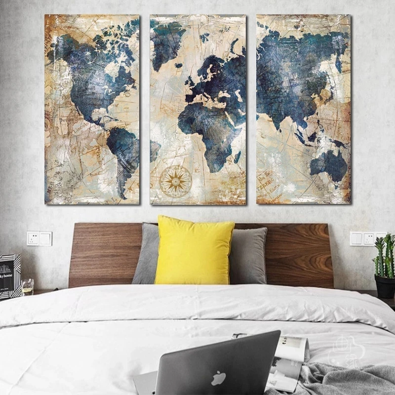3 Панели, абстрактное искусство, карта мира, картины маслом на холсте, настенные художественные плакаты, принты, настенные картины для гостиной, домашний декор для стен