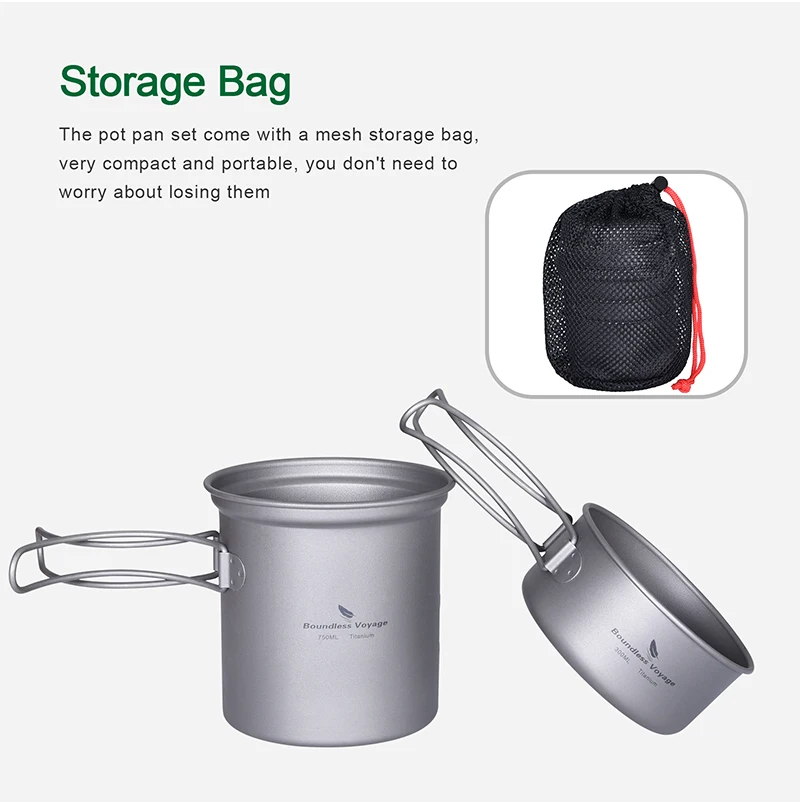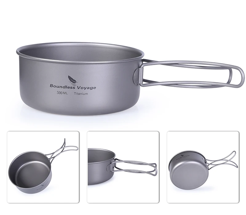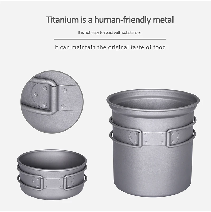 Набор посуды для отдыха на открытом воздухе, титановый Кастрюля со складной ручкой, мини-посуда для пикника, походов, бардак Ti1502ABC