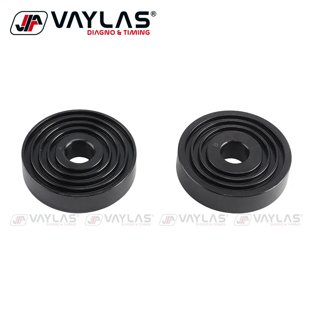 Универсальное применение шаговых дисков для втулки подшипника, бесшумного подшипника, гидравлического подшипника и резинового подшипника во многих видах транспортных средств.Содержимое:-- 20 х пресс-рукавовВнутренний диаметр от 34-72 мм В Шагах 2 ммНаружный диаметр от 44-82 мм В Шагах 2 мм-- 4 натяжных шпинделя с гайками и упорными ПодшипникамиM10. M12. M14. M16.