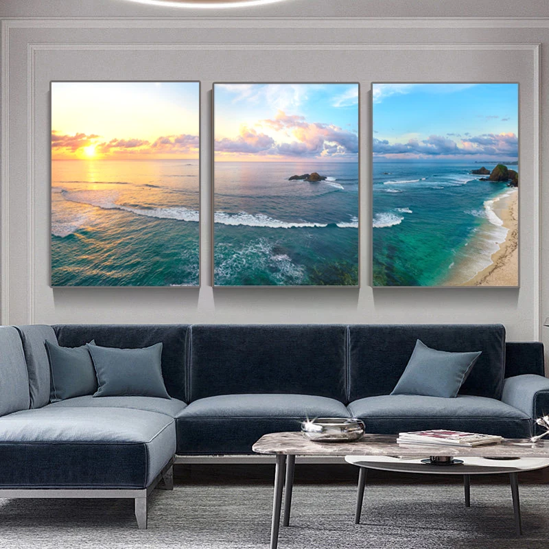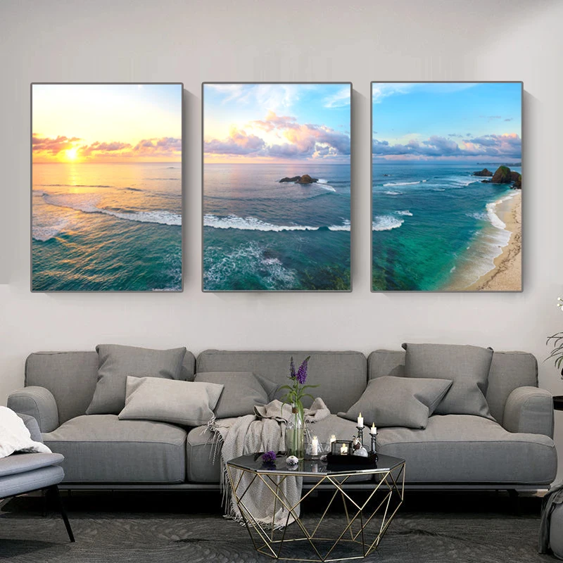 Простой стиль, вид на море, Триптих, пейзаж, холст, картина маслом, плакаты и принты, фон для дома, дивана, украшение для стен