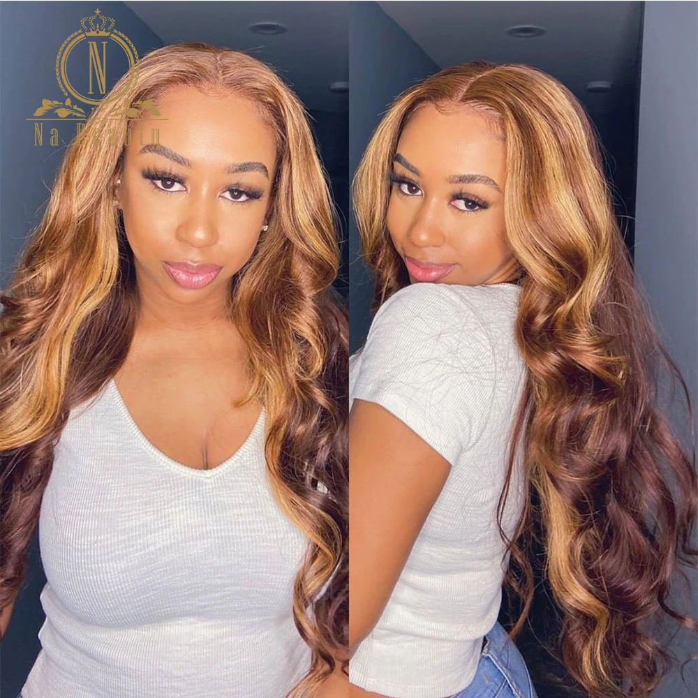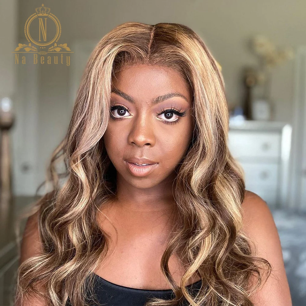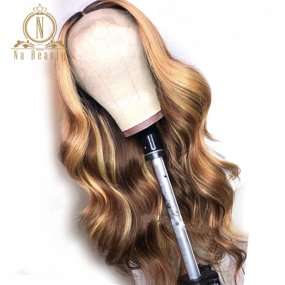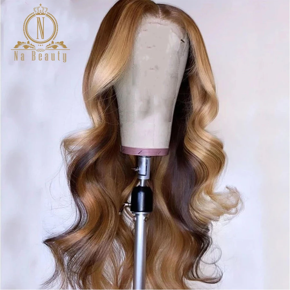 Парик блонд 13x 4 из человеческих волос на сетке спереди, Парик HD с прозрачной сеткой, волнистый, с эффектом омбре, цветной полноразмерный парик Nabeauty 180