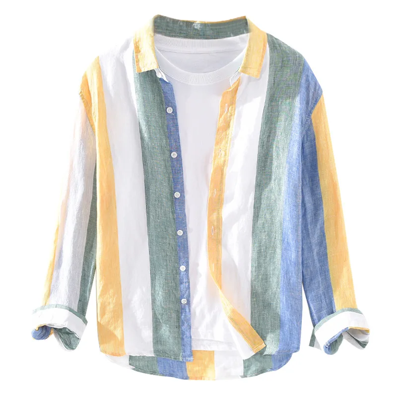 Полосатые льняные рубашки для мужчин из чистой конопли, дышащие, удобные, с длинным рукавом, свободные, Осень-зима 2020, новинка GML03-1938