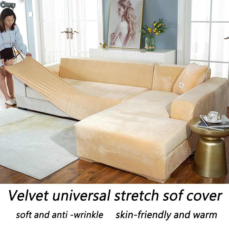 Бархатный плюшевый L-образный чехол на диван для гостиной, эластичная мебель, однотонный чехол на диван, стул, шезлонг, угловой однотонный чехол для дивана