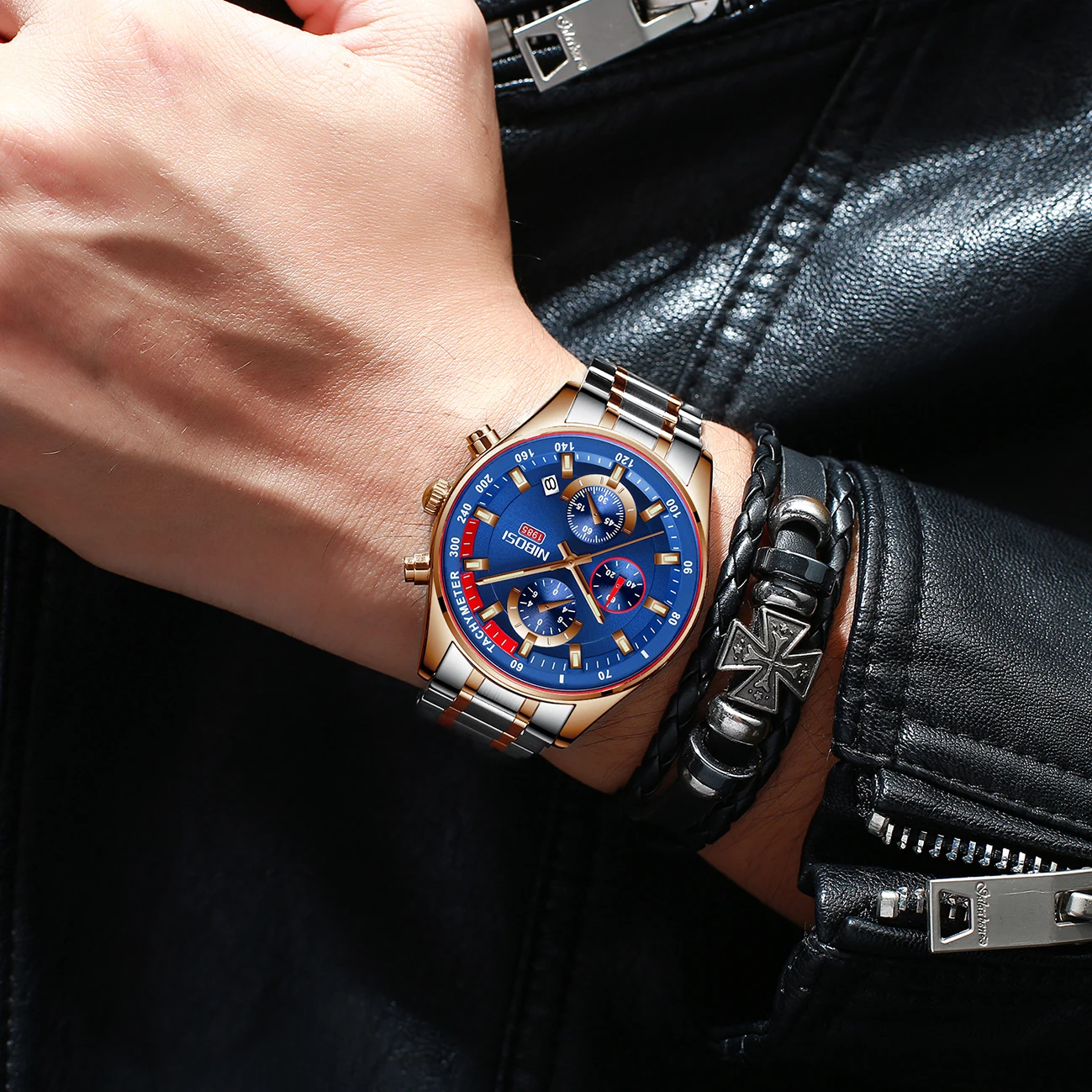 Часы наручные NIBOSI Мужские кварцевые, спортивные брендовые Роскошные деловые водонепроницаемые, 2020