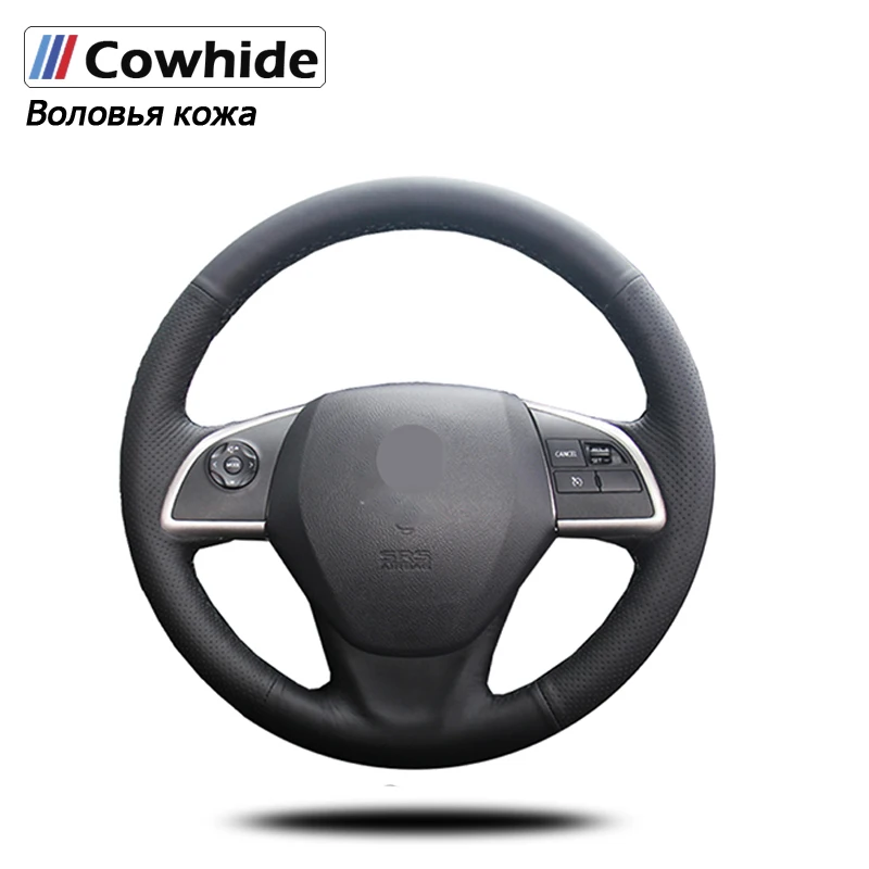 Черный чехол на руль из натуральной кожи для Subaru Forester 2008-2...