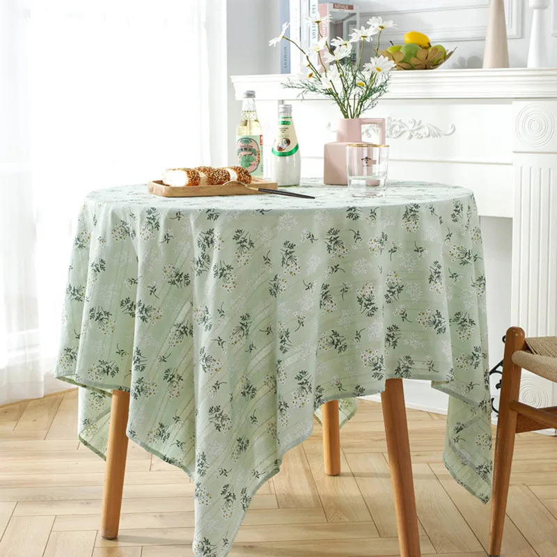 Прямоугольная круглая скатерть с цветочным рисунком, пасторальный чехол для стола из хлопка и льна для пикника, фоновая ткань, украшение для домашнего стола