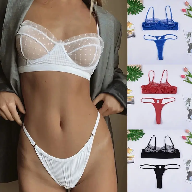 Комплект женского кружевного нижнего белья, прозрачный бюстгальтер, черное кружевное нижнее белье, комплект нижнего белья, 2020