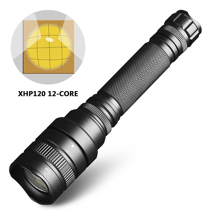 Фонарик XHP120, водонепроницаемый, 12 ядер, 18650 лм, с аккумулятором