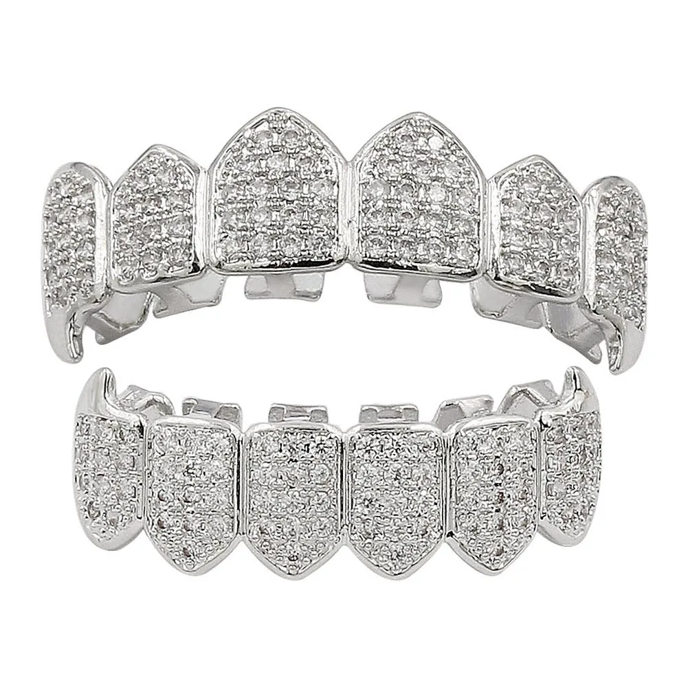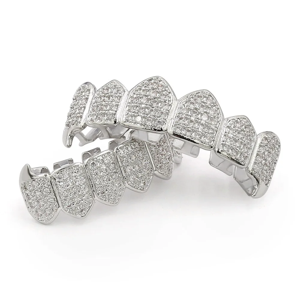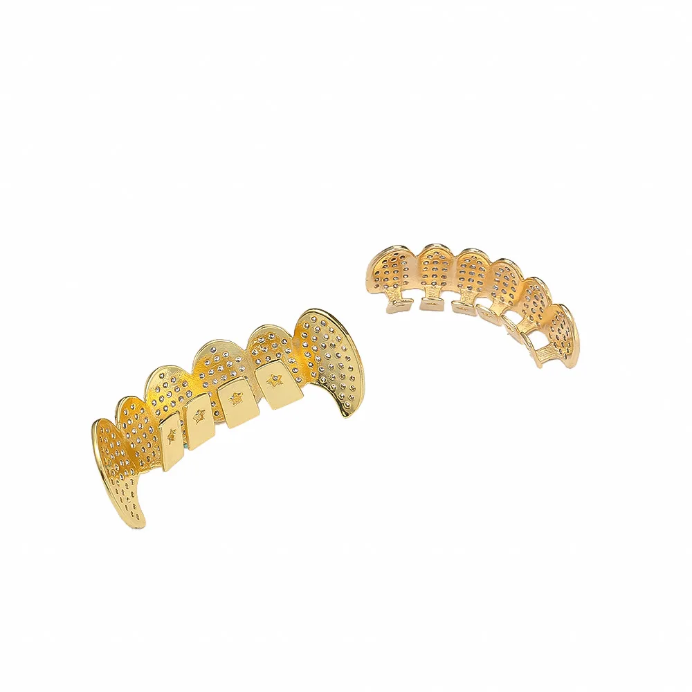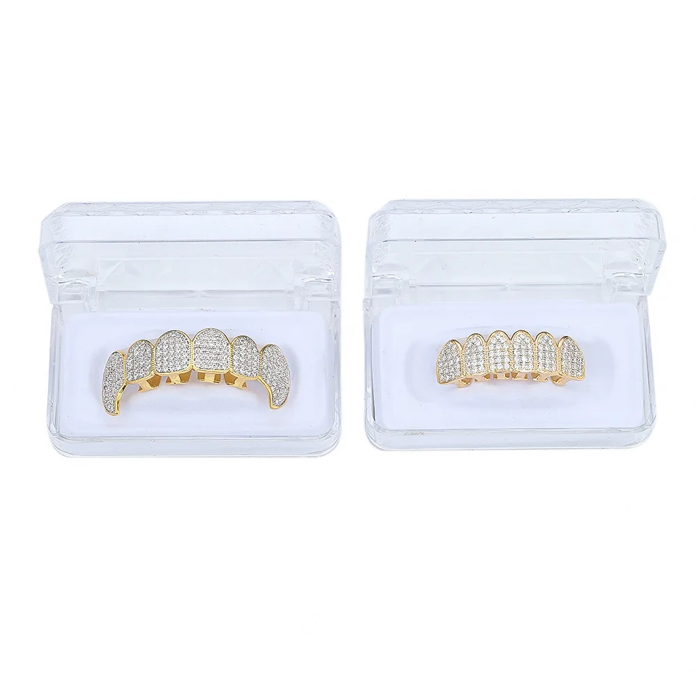 Мужские Зубные коронки хип-хоп золотые грызунки Верхняя Нижняя микрозакрепка CZ каменные Зубы вампира Набор Косплей вечеринка тело ювелирные изделия для женщин мужчин подарок