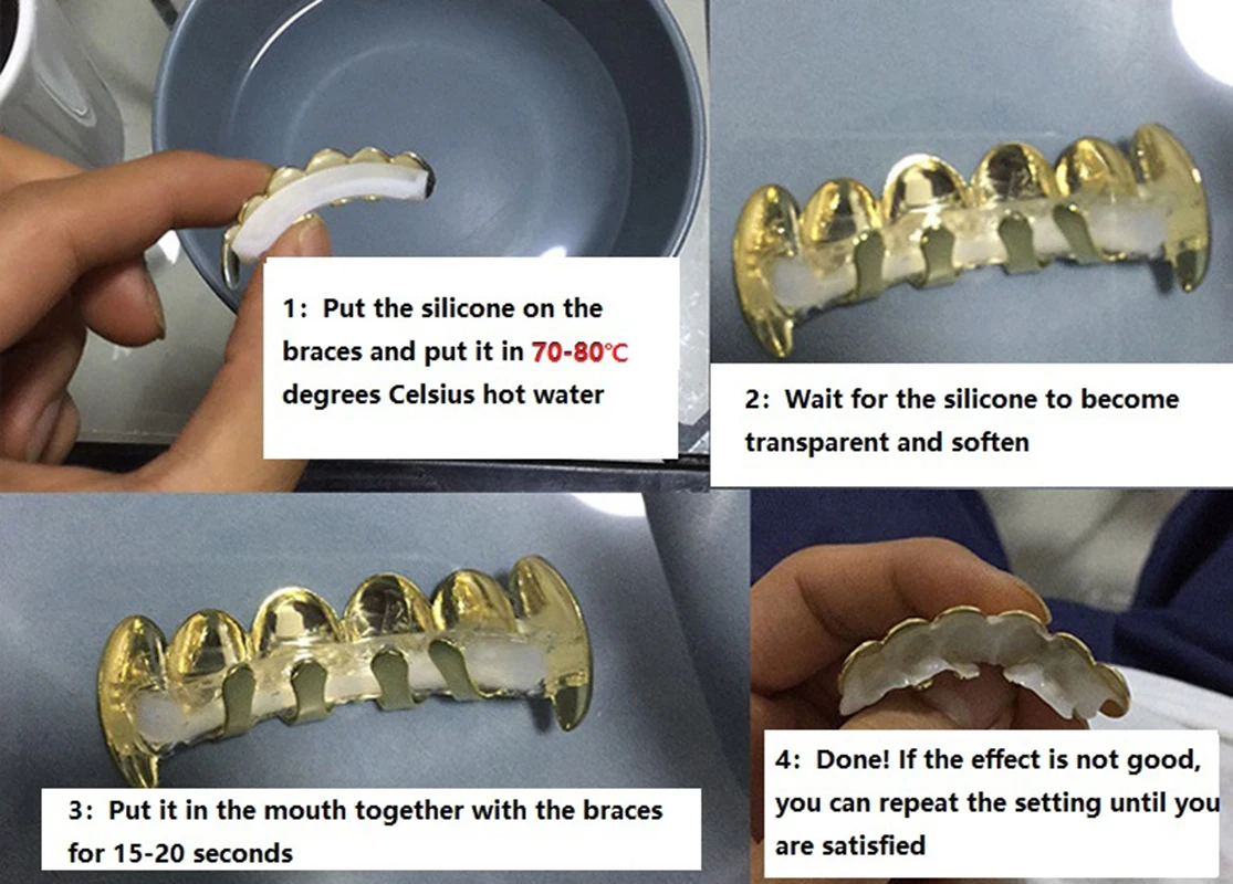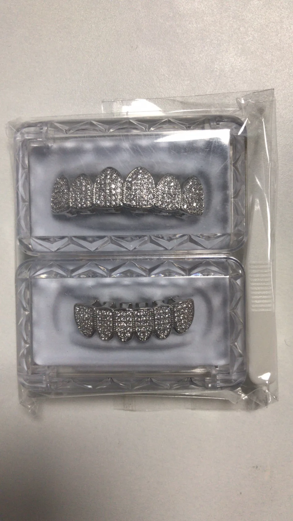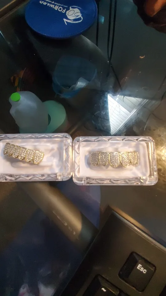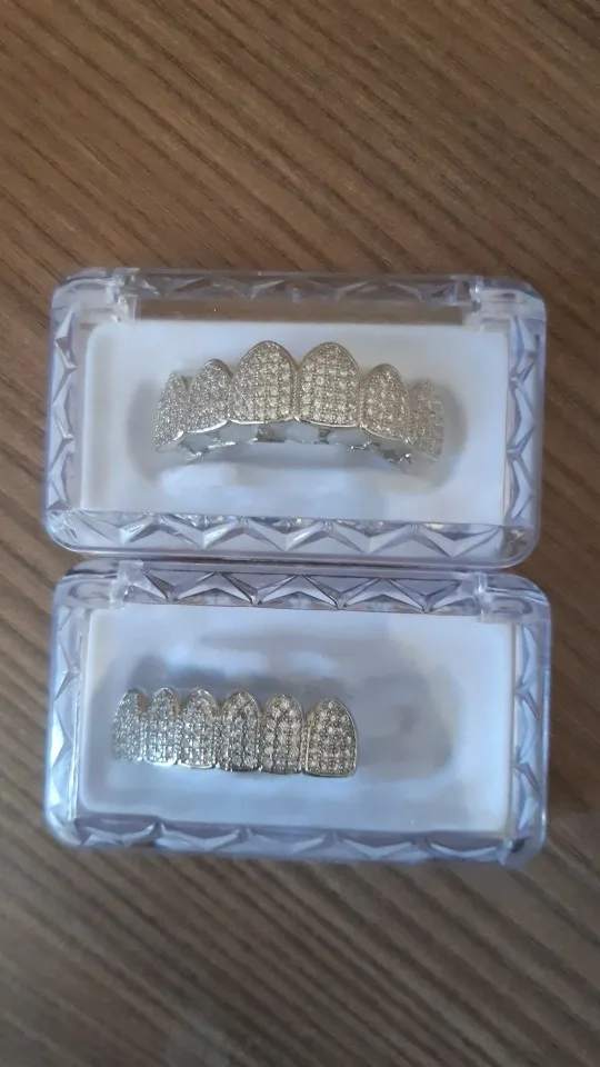 + грилзы хорошие, блестят, ровные, все как на фото. - при доставке расплавились силиконовые вставки,сами зубы не такие большие как кажутся. В целом советую к заказу!