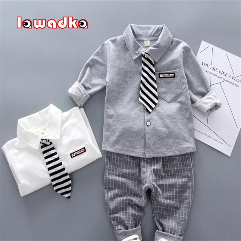 Lawadkaвесенне-осенние комплекты одежды для маленьких мальчиков футболка с длинными рукавами и галстуком + штаны, комплект из 2 предметов хлопковый спортивный костюм для мальчиков, одежда 2022