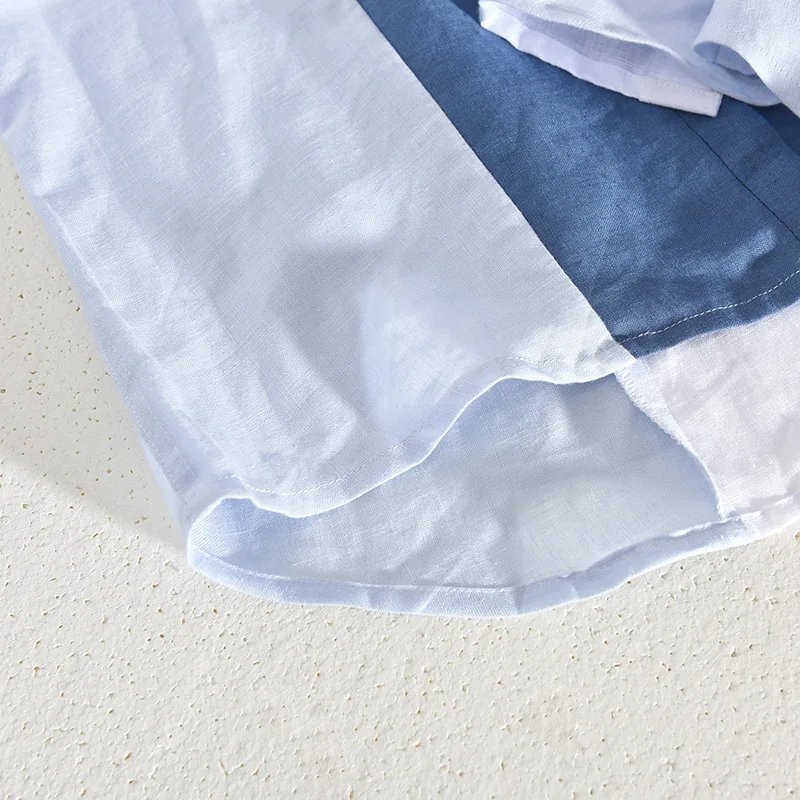 Лоскутная полосатая льняная рубашка для мужчин из чистой конопляной...
