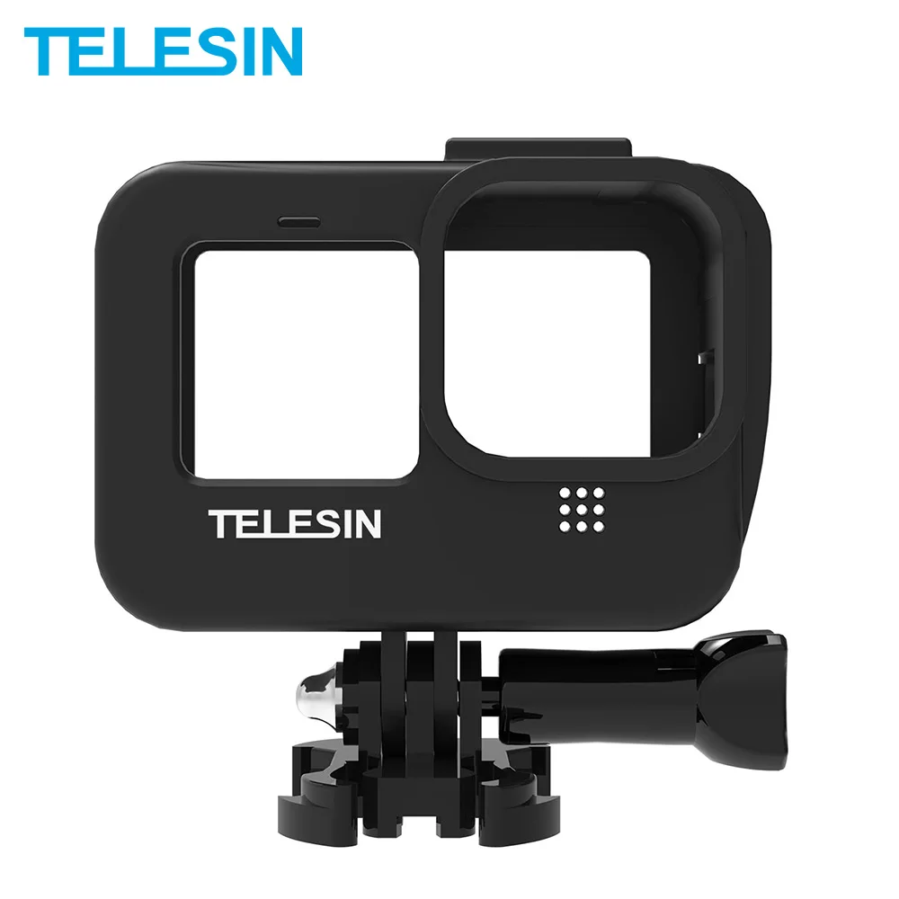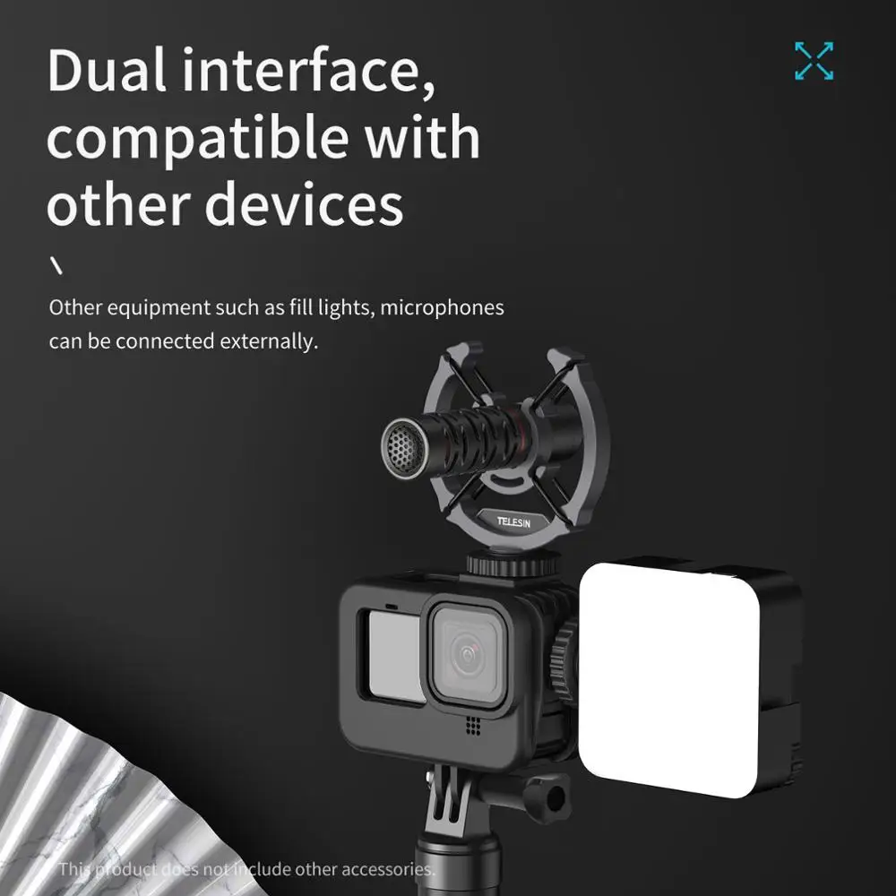TELESIN Vlog рамка Корпус чехол кронштейн с холодным башмаком батарея боковая крышка отверстие для GoPro Hero 9 10 Черные Аксессуары