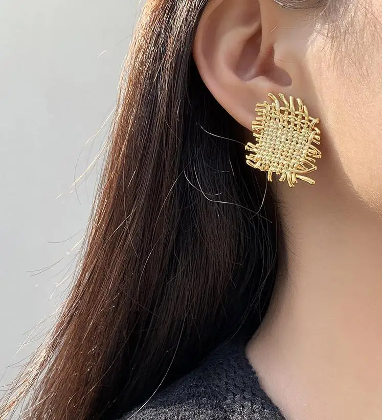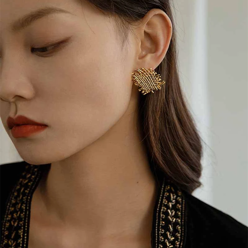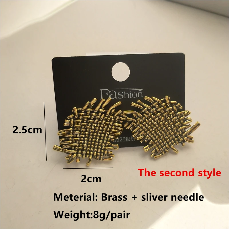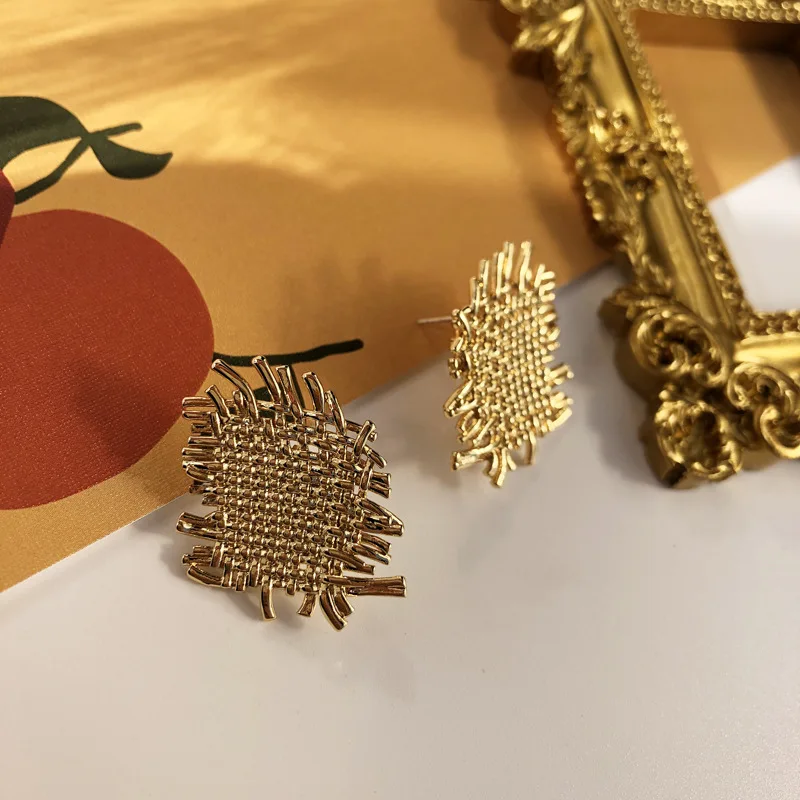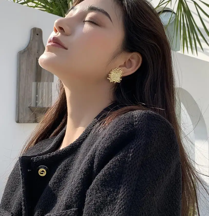 Серьги-гвоздики HUANZHI, из золотистого металла, нестандартной геометрической формы, с тканой текстурой, S925, для женщин и девочек, ювелирные изделия для вечевечерние и путешествий, 2020