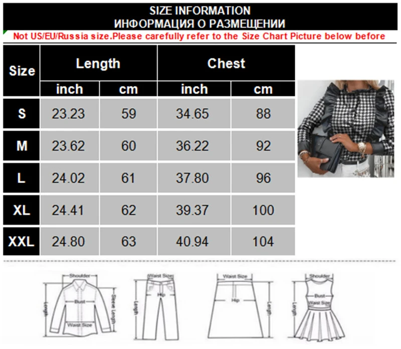 Рубашки с оборками из искусственной кожи с рисунком гусиные лапки, ...