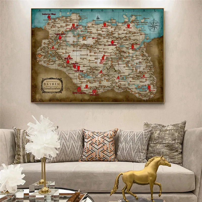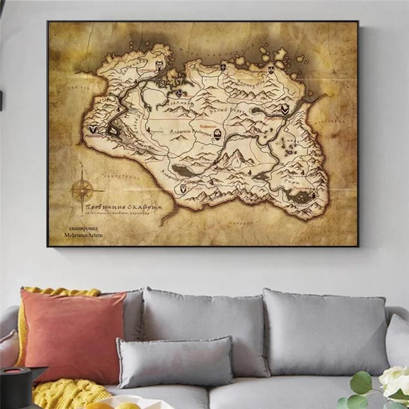 Skyrim карта старшие свитки игры плакаты и принты домашний декор настенное искусство декоративная картина на холсте картина для гостиной icon star icon star icon star icon star icon star