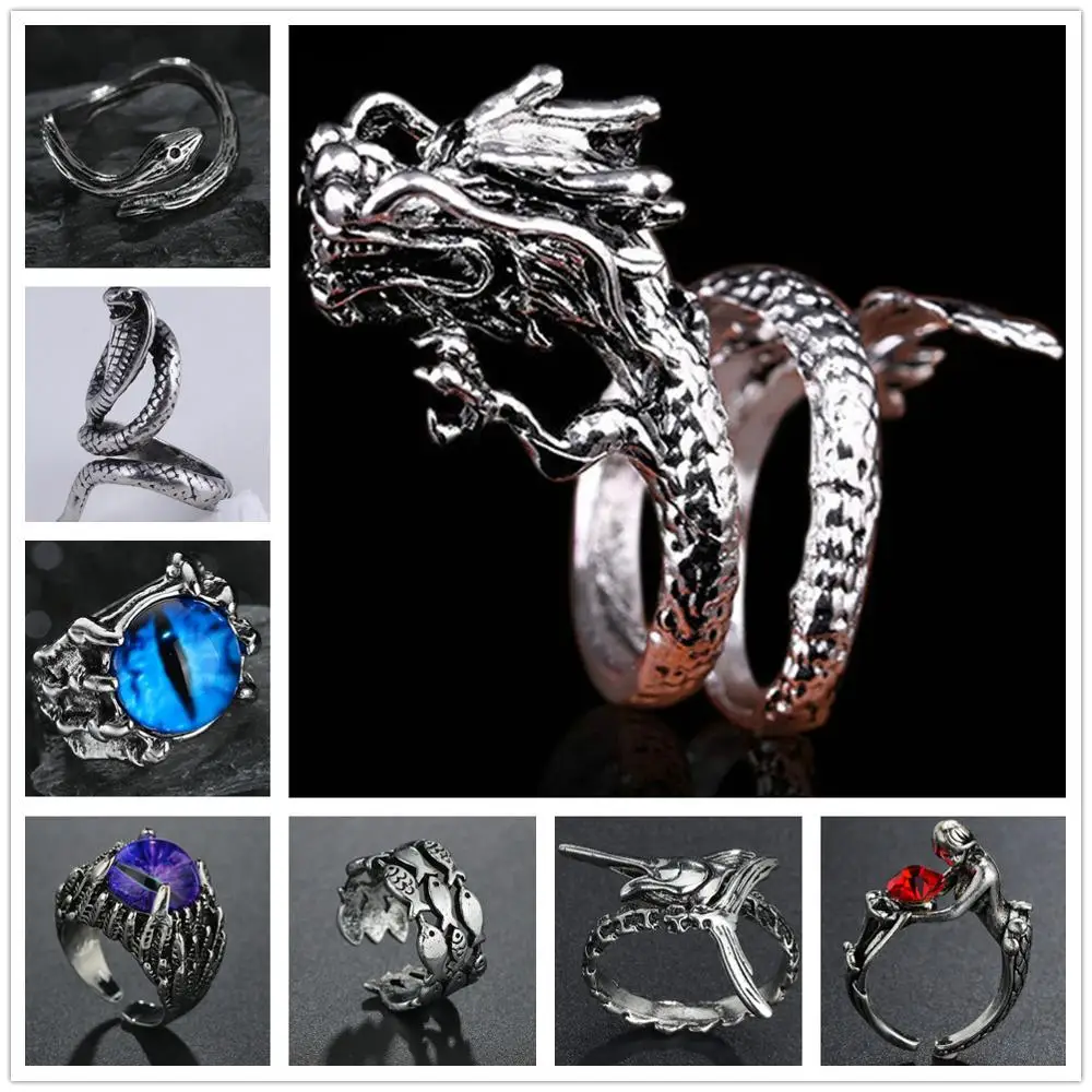 1. Имя:Новейшее мужское кольцо в форме змеи В Форме Дракона, регулируемое модное мужское и женское ювелирное изделие, подарок, прямые продажи