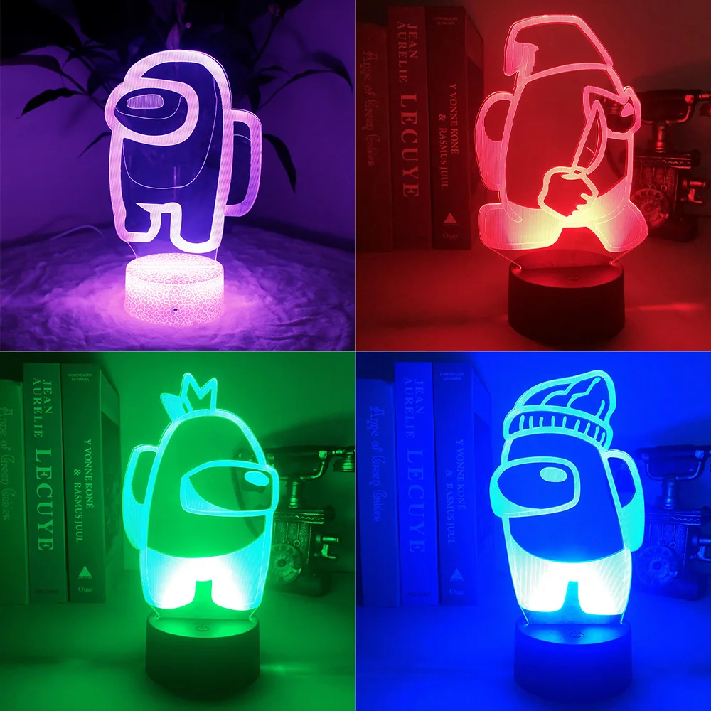 Украшение для спальни среди нас настольная лампа USB зарядка 16 цветов с пультом дистанционного управления светодиодные ночные светильники 3D акрил детские рождественские подарки