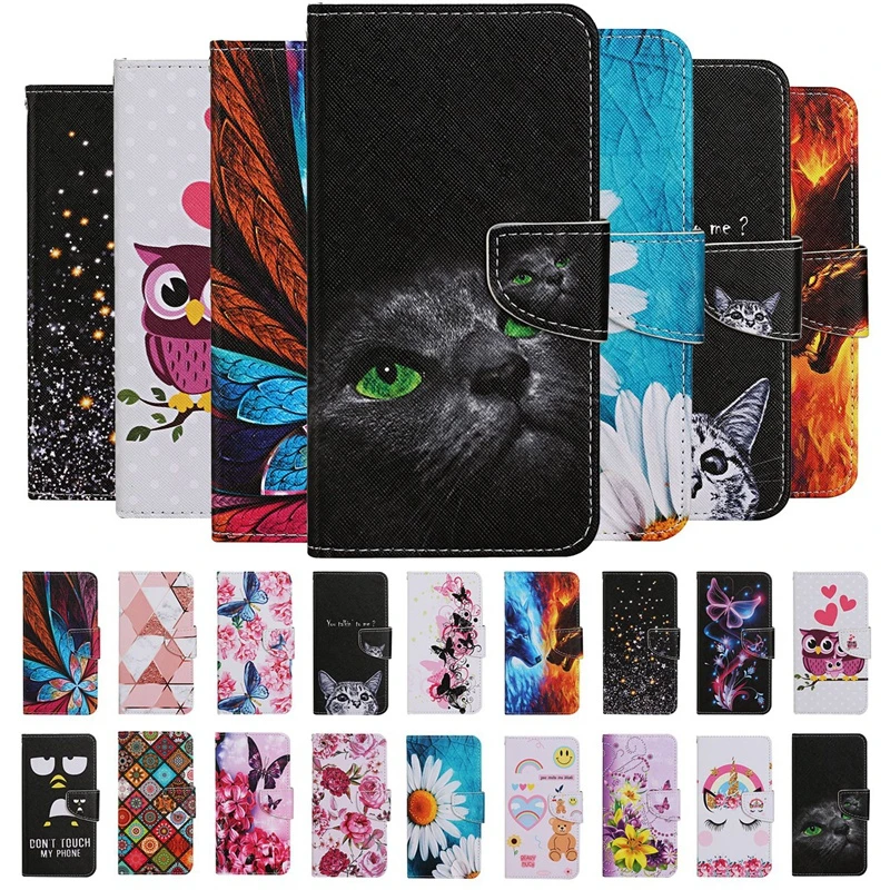 Кожаный чехол-книжка с рисунком для Samsung Galaxy A10 A20 A30 A40 ...
