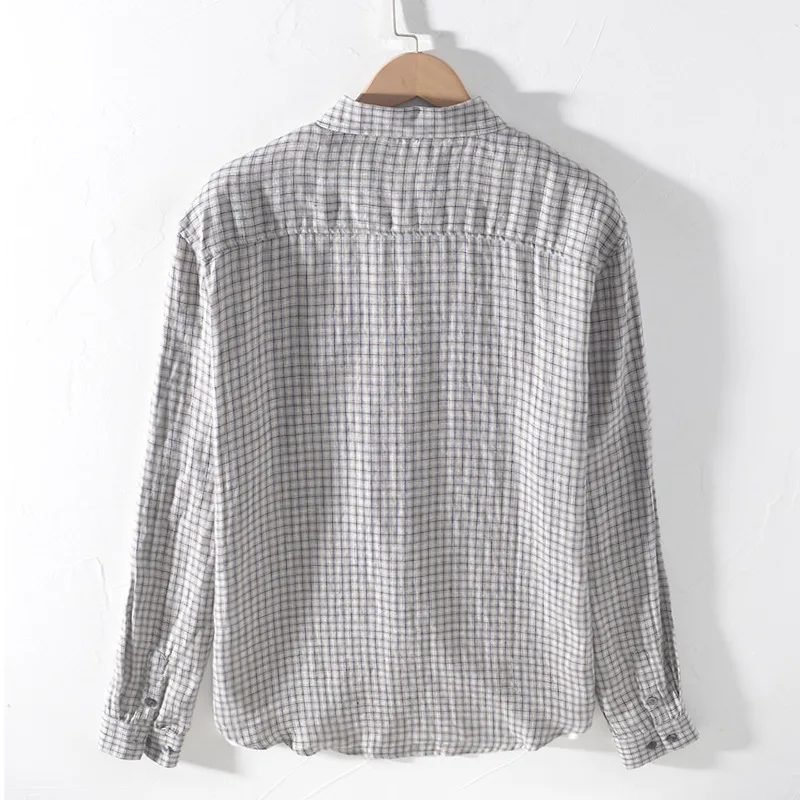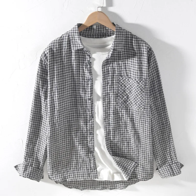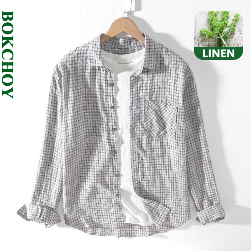Рубашка Мужская льняная в клетку, дышащая удобная тонкая Свободная Повседневная сорочка из чистой пеньки с длинным рукавом, Осень-зима 2020, GML03-1918