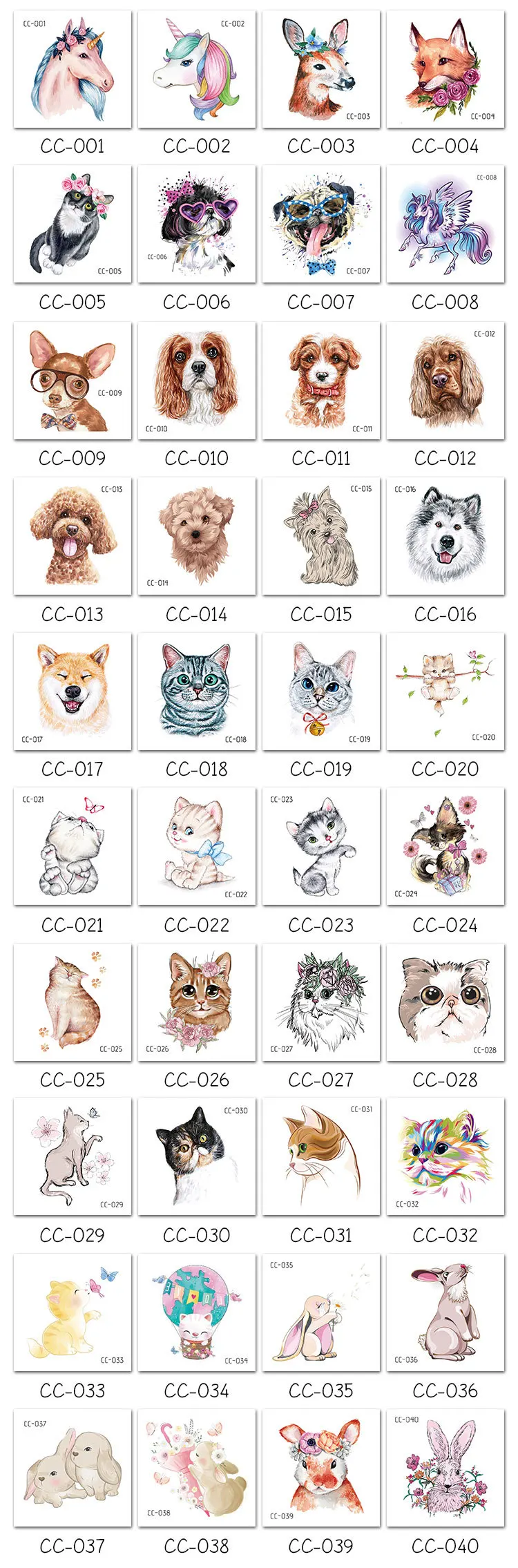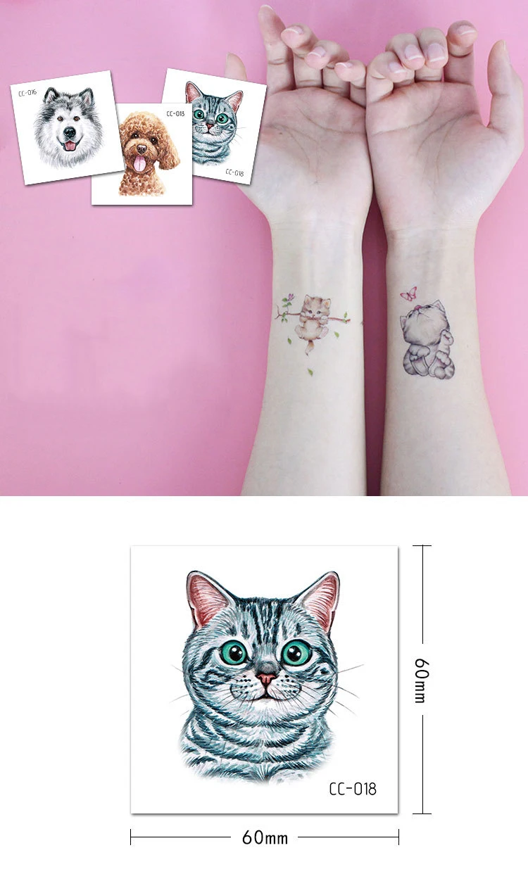 5 шт., временные тату-наклейки в виде кота и собаки