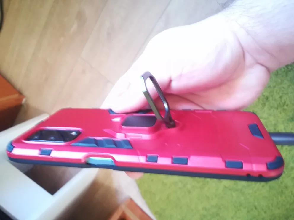 чехол как на картинках, чувствуется габаритность и основательность по сравнению с штатным чехлом. Магнитное основание держит хорошо, само кольцо немагнитной, пока тугое и хорошо фиксируется, держать чехол, просунув палец комфортно. Насчёт защитных стекол на камеру, это не стекла, а поликарбонат, так как гнутся. Заказывал посылку 8. 02, из за китайского нового года получил 25. 03 только 25. 03. Но претензий нет