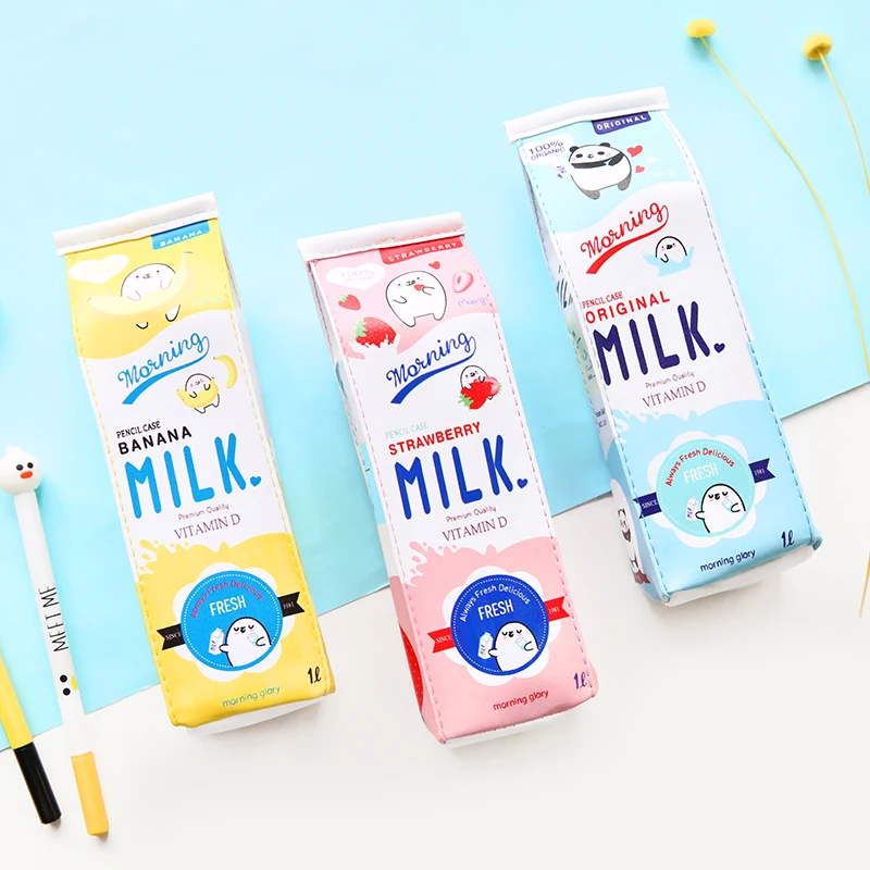 Чехол для карандашей из ПУ кожи с рисунком утра и молока, модный пенал, органайзер для хранения канцелярских принадлежностей, школьные и офисные принадлежности, Escolar