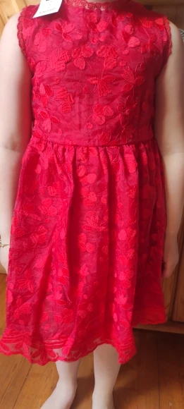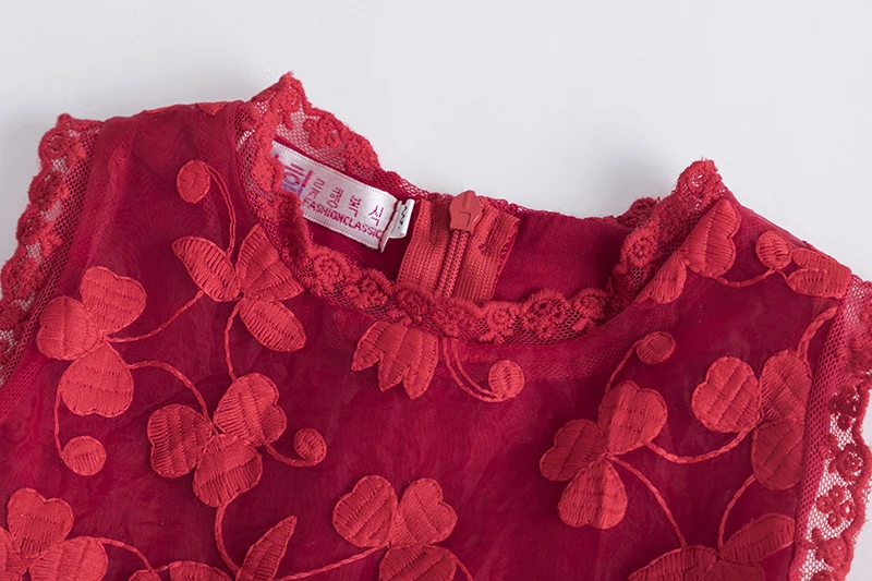 Детское кружевное платье, красное, летнее, с цветочным кружевом
