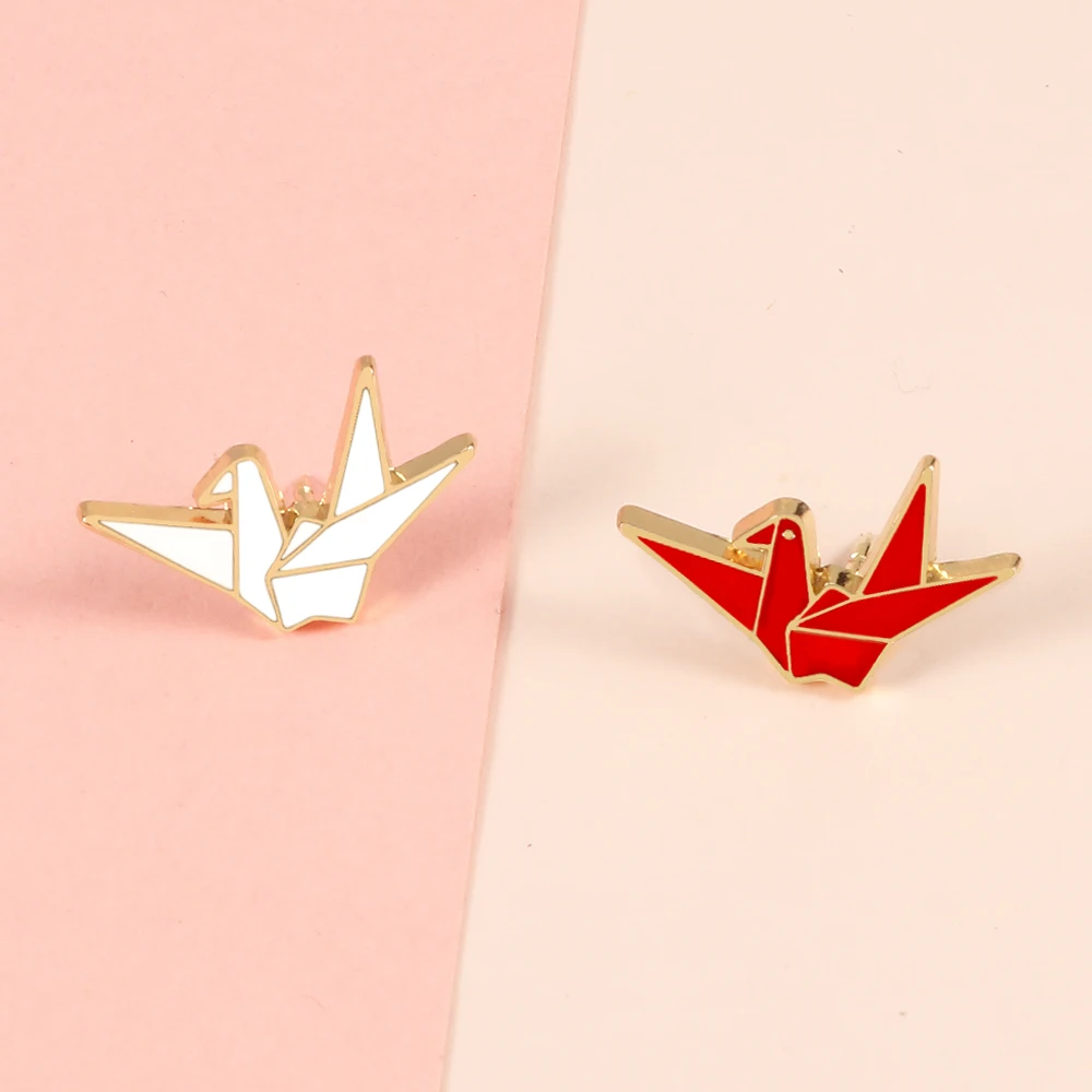 Эмалированная брошь с бумажным журавлем, модная брошь для женщин и девушек, значок с животными оригами белого, красного цветов, значок-булавка, ювелирное украшение для вечевечерние, подарки для детей, друзей, пар