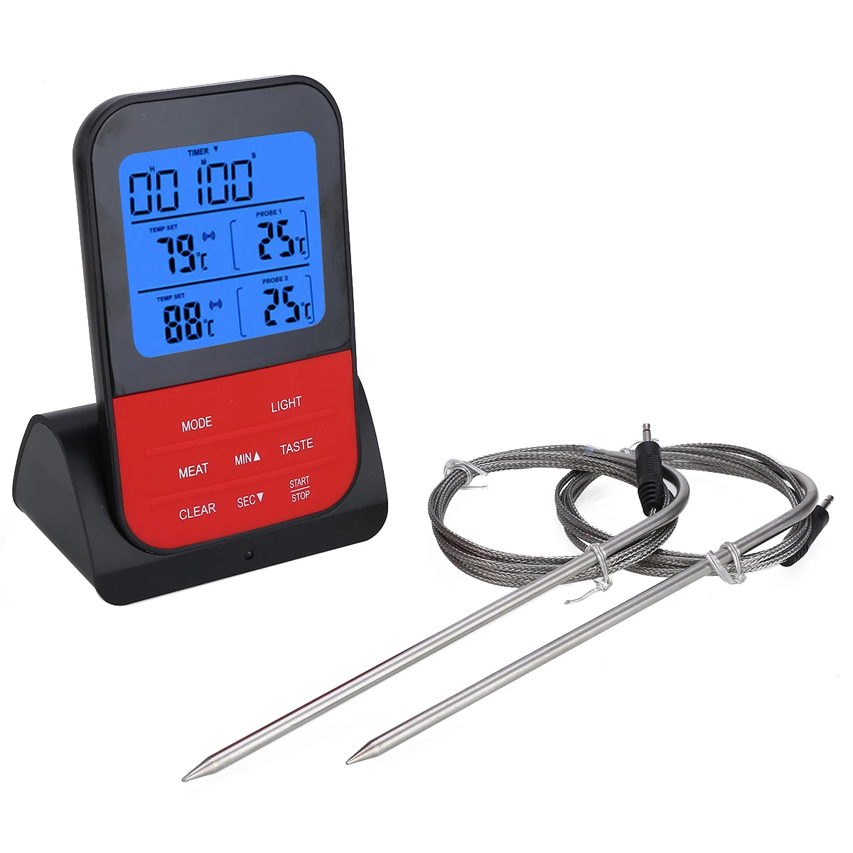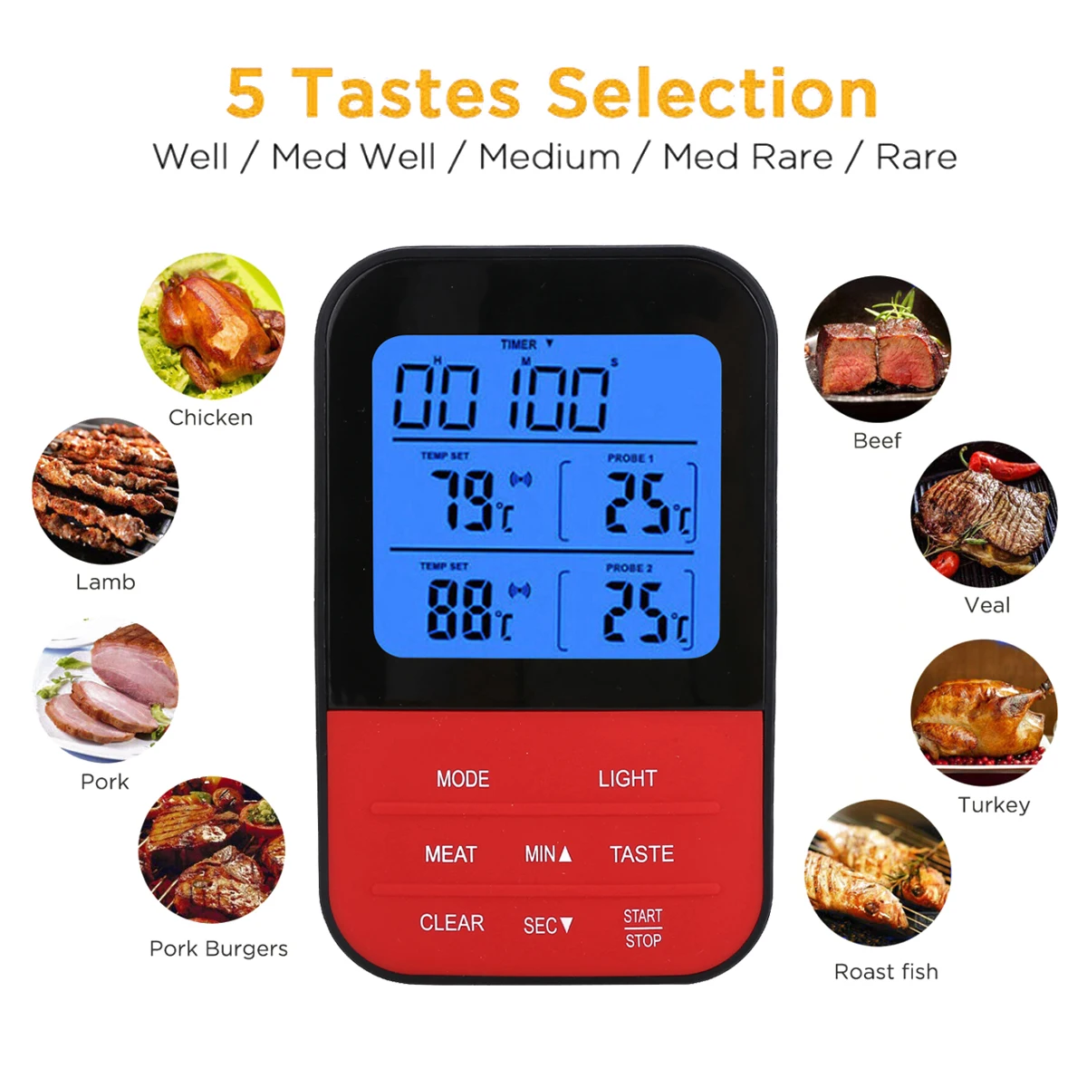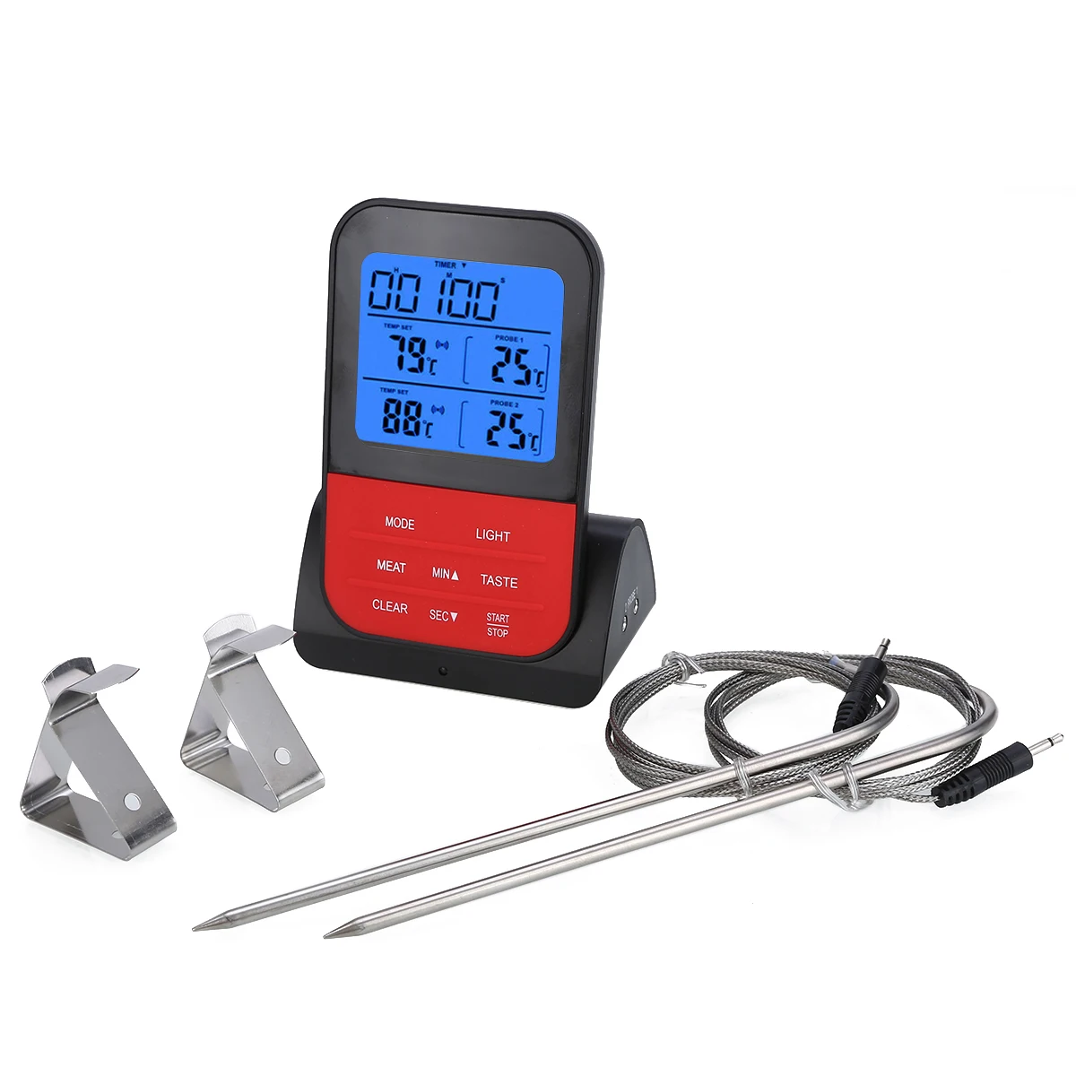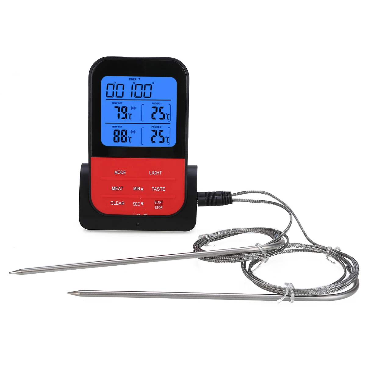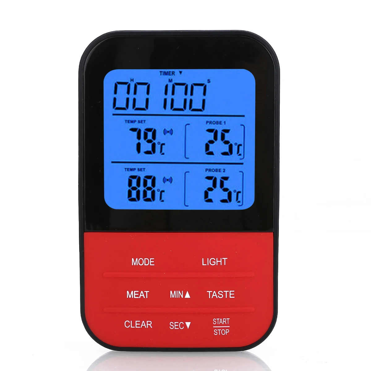 Беспроводной цифровой термометр для гриля, прибор для измерения температуры в духовке, для пикника, барбекю, мяса, с двойным щупом светодиодный светодиодным цифровым дисплеем