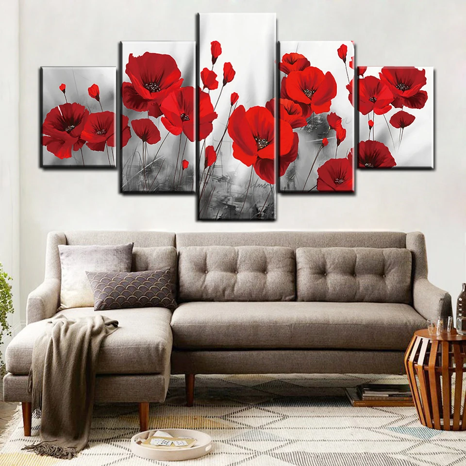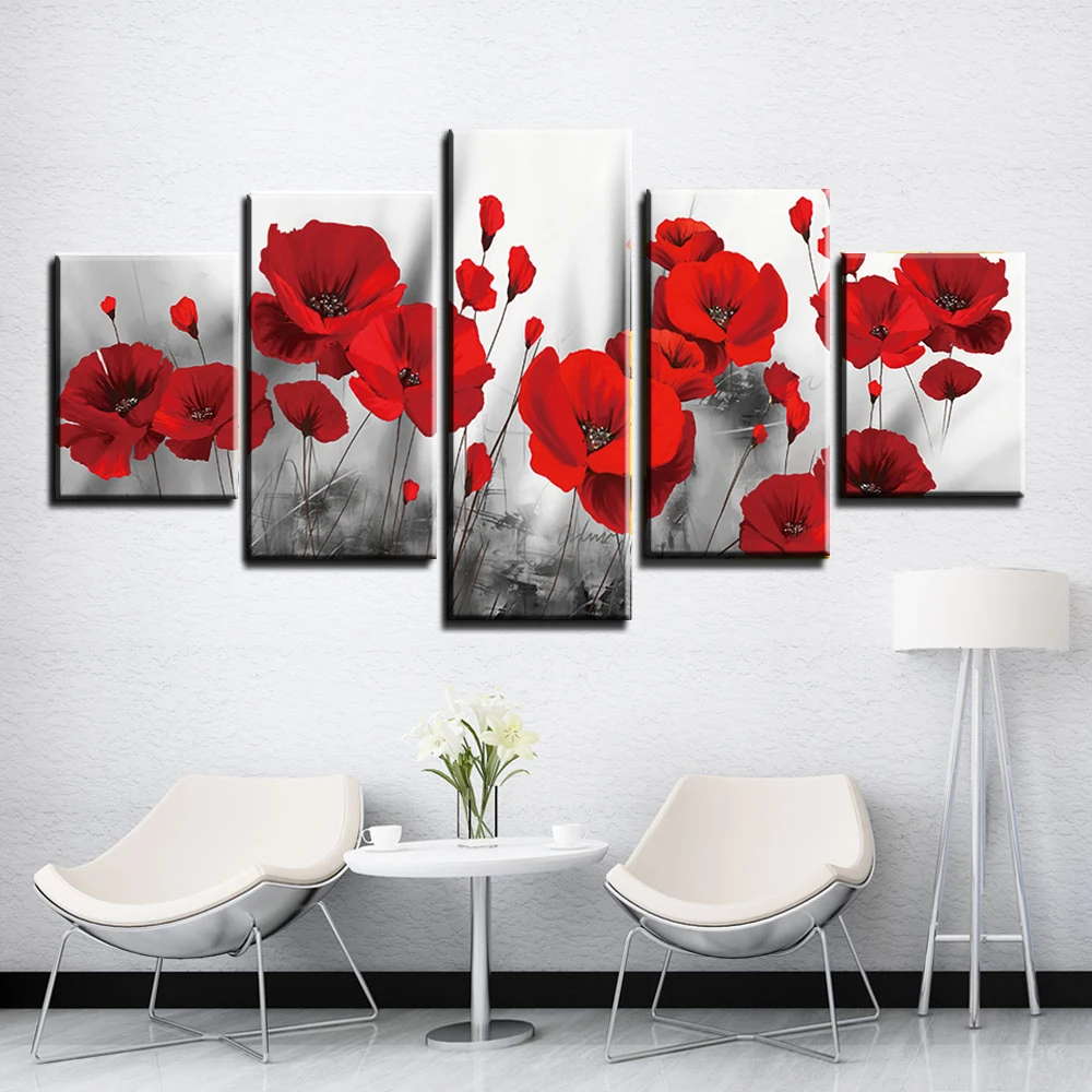 Модульная Картина на холсте NoFrame, 5 шт., красные цветы, Картина на холсте, современное искусство стен