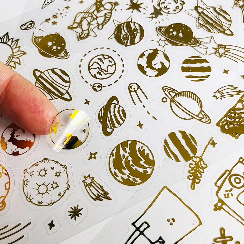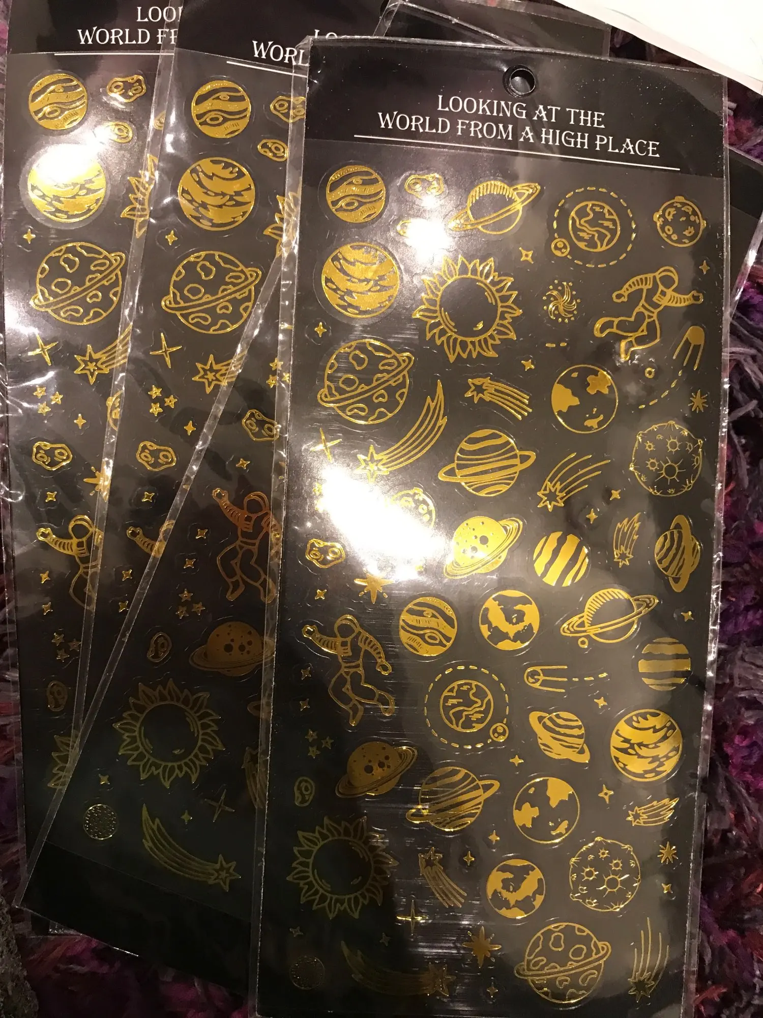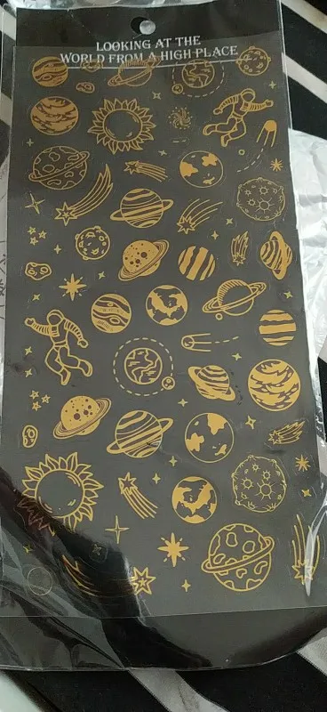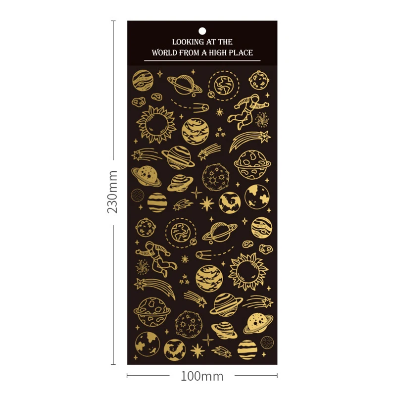 Наклейка для ноутбука, компьютера, телефона, 1 лист, с золотой фольгой, с красивыми звездами и планетами