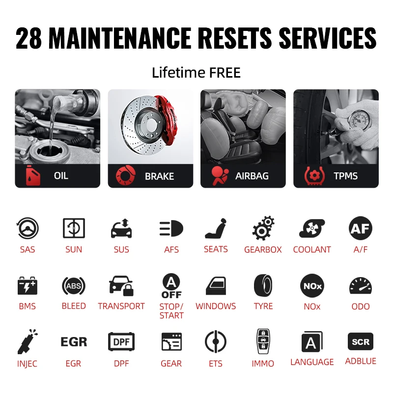 Поддержка 126 автомобильных брендов (вся модель автомобиля) полная система диагностики, все программное обеспечение и 28 услуг сброса. (срок службы бесплатно использовать) 14 языков это лучший диагностический автомобильный инструмент.