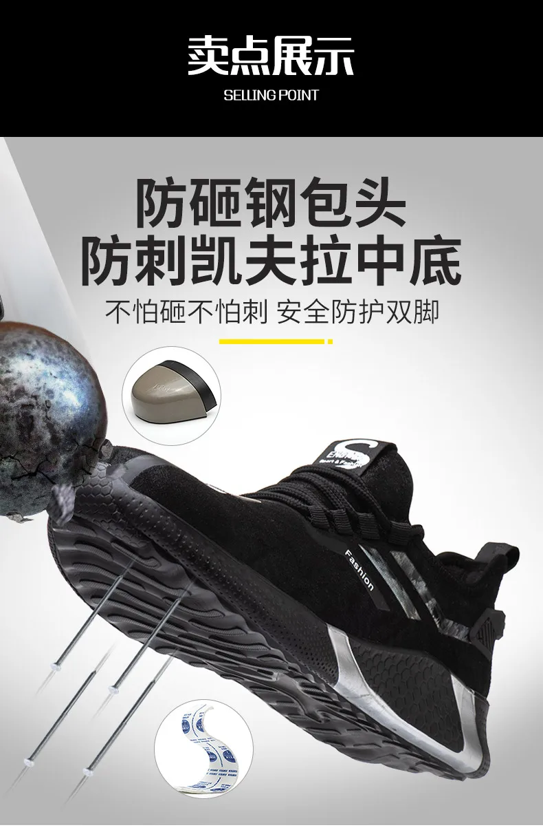 Защитная обувь, мужские непрокалываемые рабочие ботинки, неразрушаемые рабочие кроссовки со стальным носком, легкие мужские защитные ботинки, обувь
