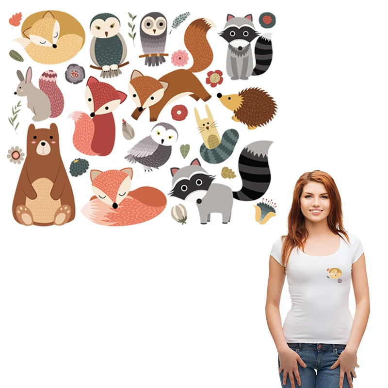 Термонаклейки с изображением лесных животных, виниловые, моющиеся