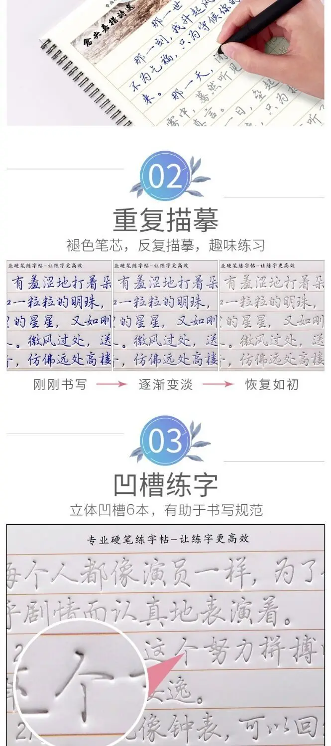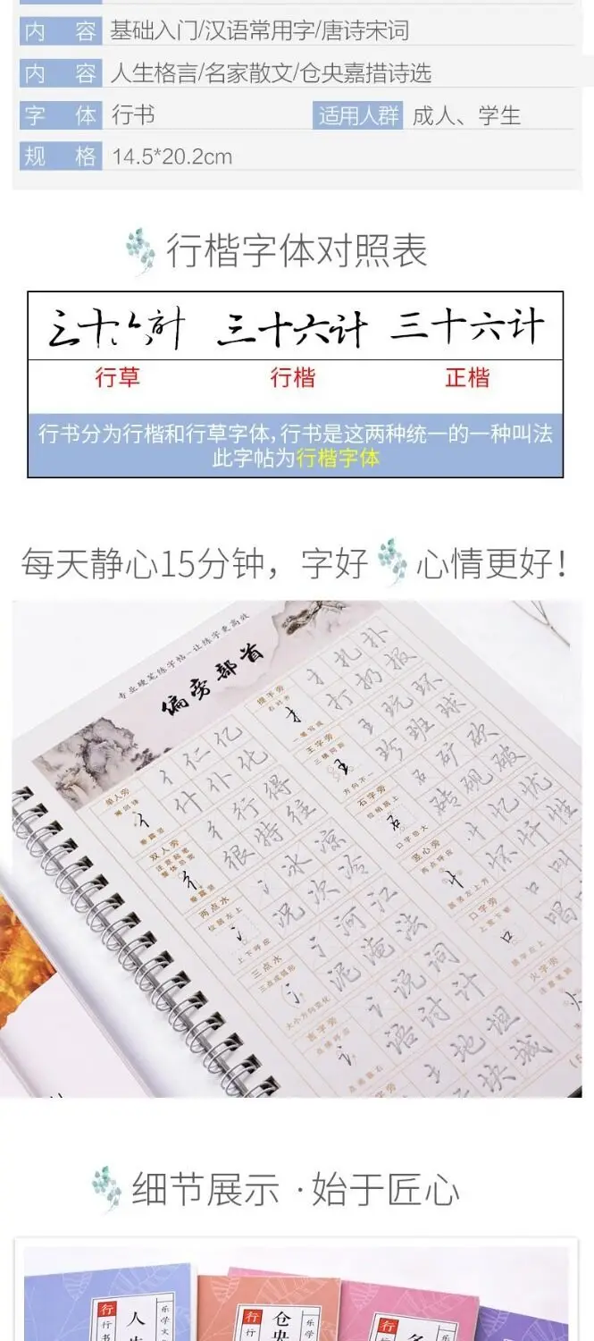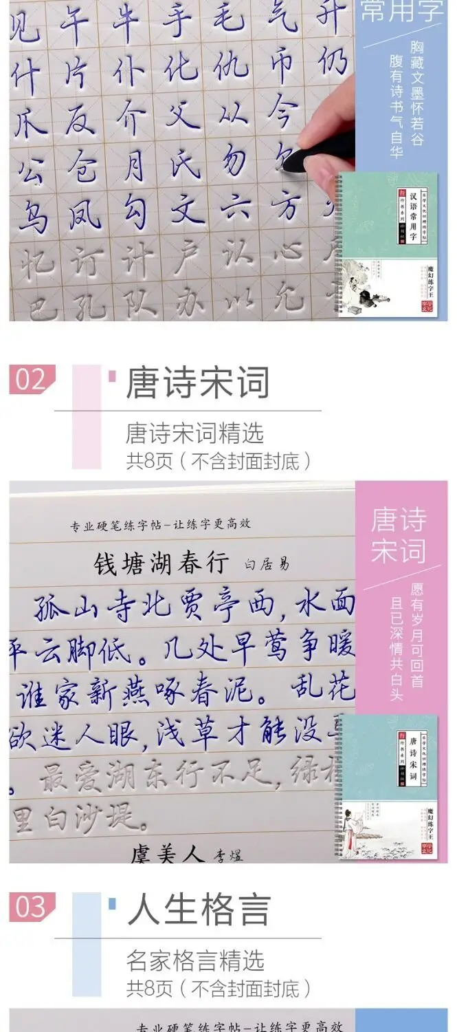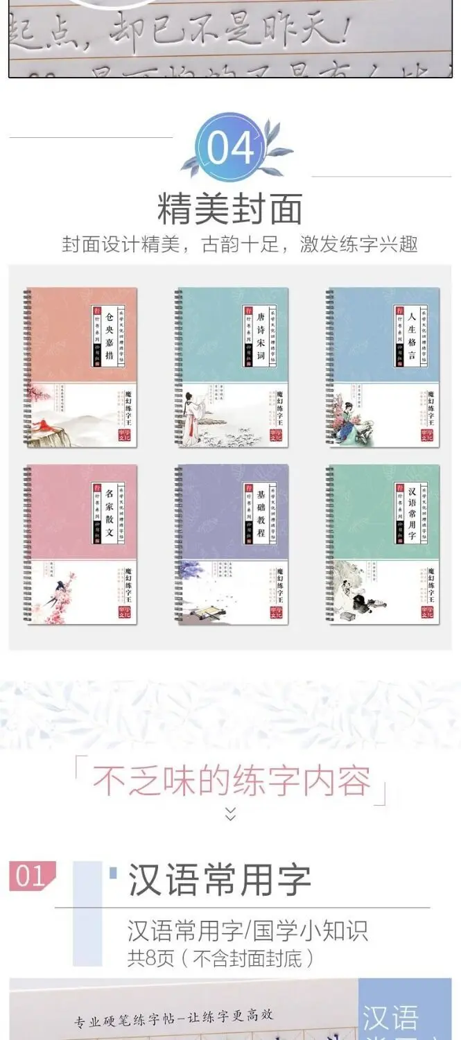 Тетрадь для изучения китайских иероглифов, 3D, древняя поэзия, мног...