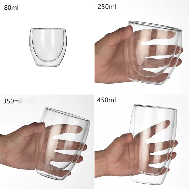 Наименование товара: стеклянная чашка Материал: стекло Диапазон температур: -20 ~ 150 градусов Цельсия Емкость: 80 мл/250 мл/350 мл/450 мл Особенности: двойная стенка, портативная, прочная, прозрачная, многофункциональная 80 мл: высота: 7 см/2,76 ", Калибр: 6,5 см/2,56" (прибл.) 250ml: высота: 8,5 см/3,35 ", Калибр: 8,5 см/3,35" (прибл.) 350ml: высота: 11,5 см/4,53 ", Калибр: 8,5 см/3,35" (прибл.) 450ml: высота: 14,5 см/5,71 ", Калибр: 8,5 см/3,35" (прибл.)