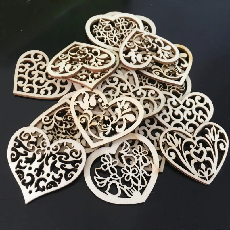 30 шт. деревянные поделки, полые резьбовые цветы, сердце, деревянны...