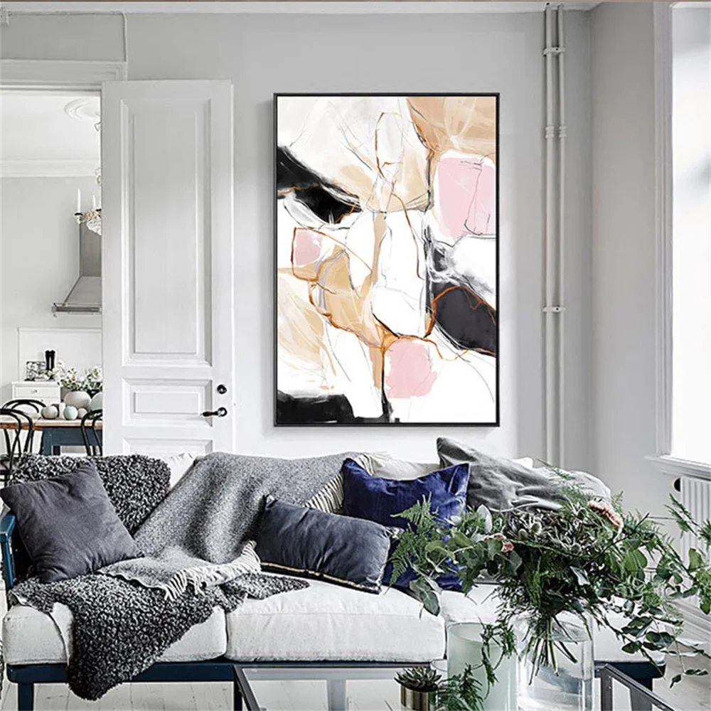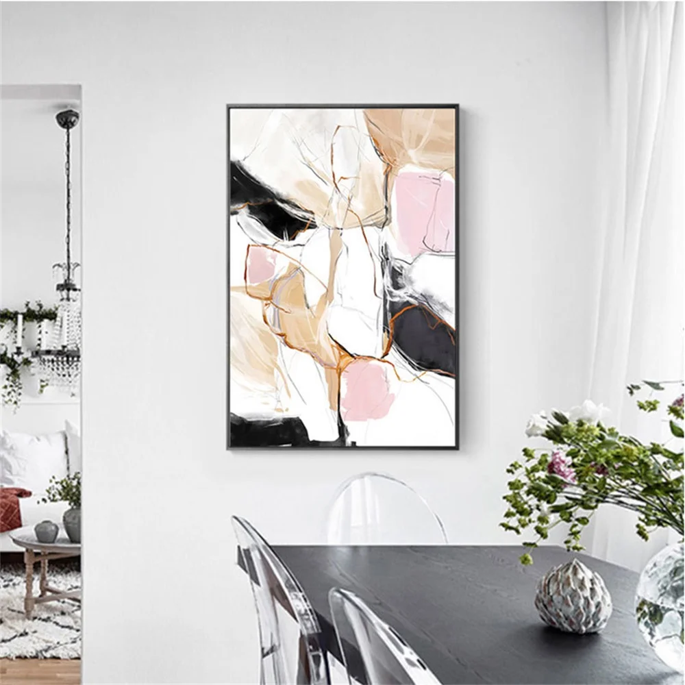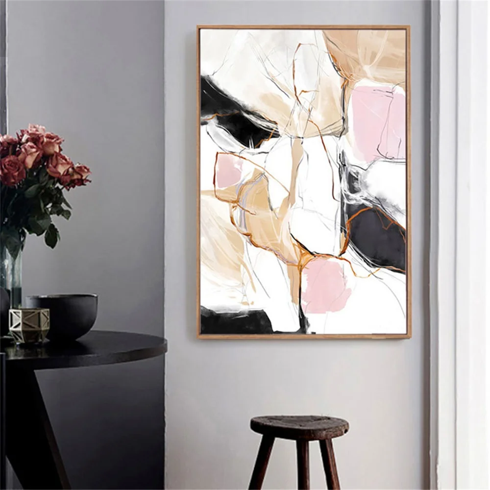 Абстрактная Картина на холсте с изображением линий розового, черного, белого и золотого цвета, настенный постер в скандинавском стиле для украшения дома