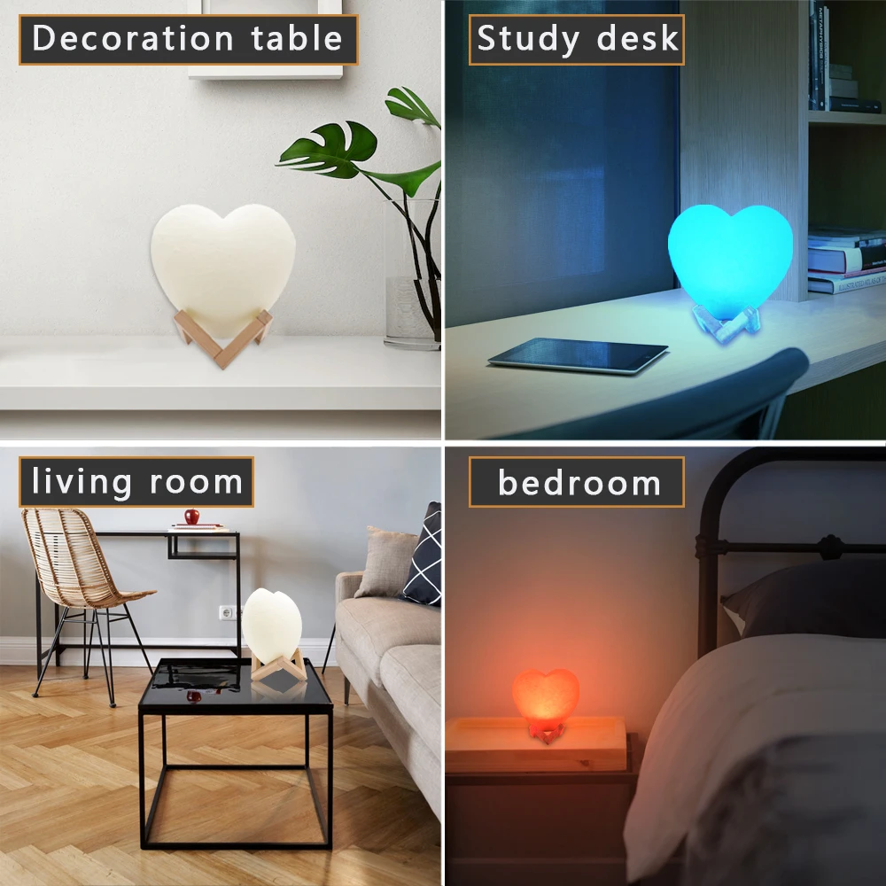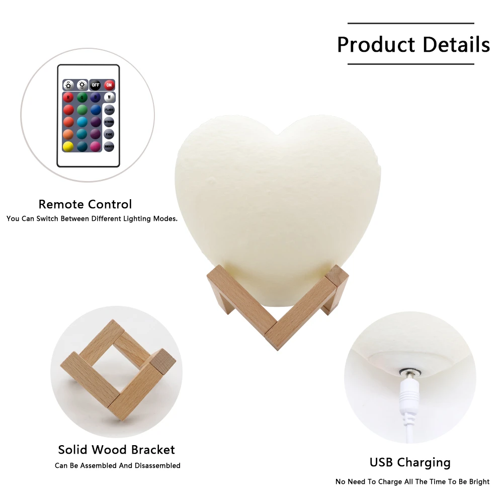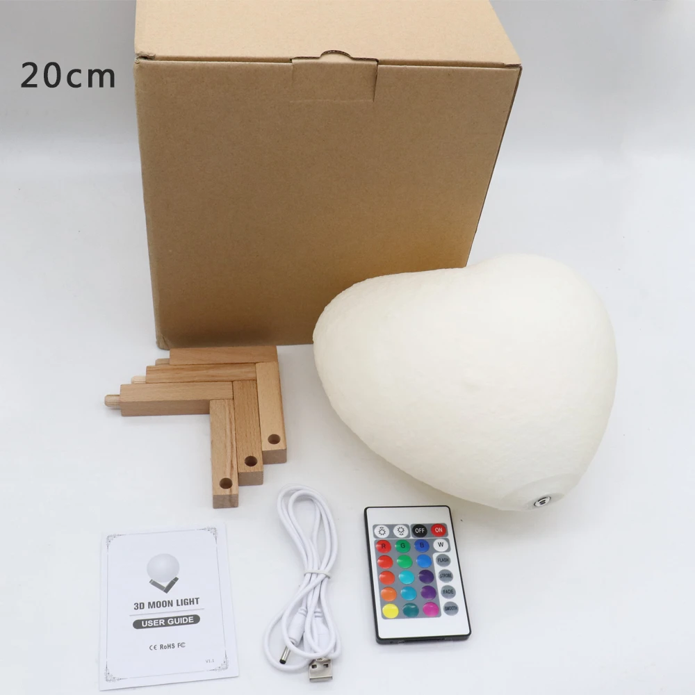 Светодиодная лампа для Луны с 3D принтом Сердце Ночник светильник на новый год Рождество для любви подарок для детей 16 цветов прикроватный декор для спальни настольная лампа