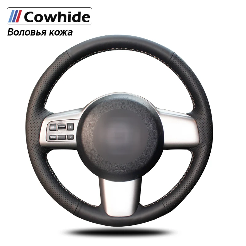 Черный чехол на руль из натуральной кожи для Subaru Forester 2008-2...