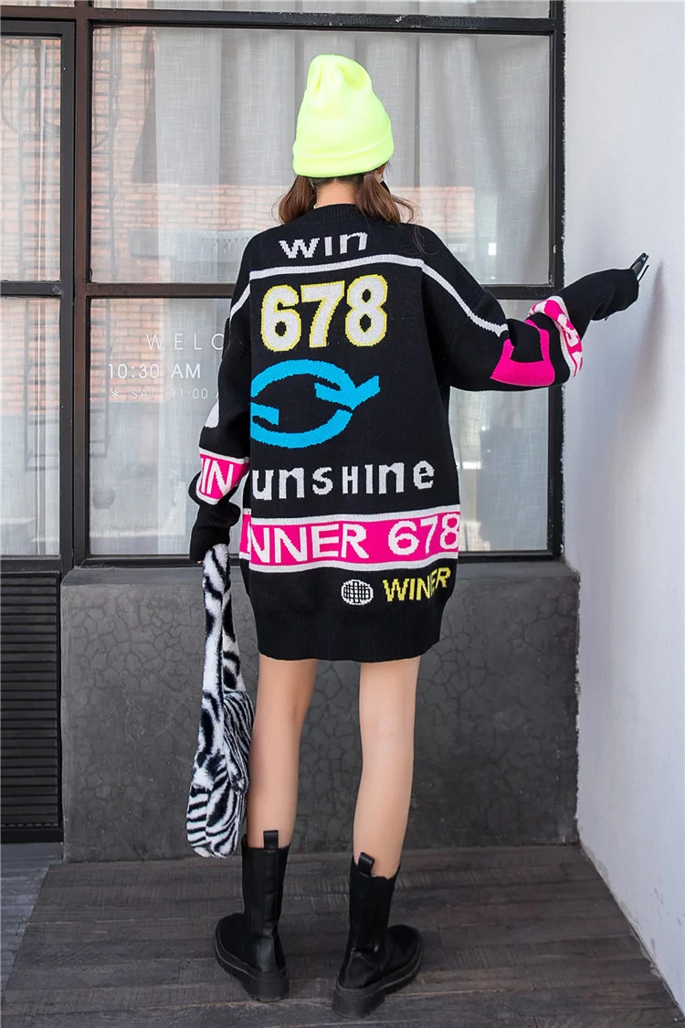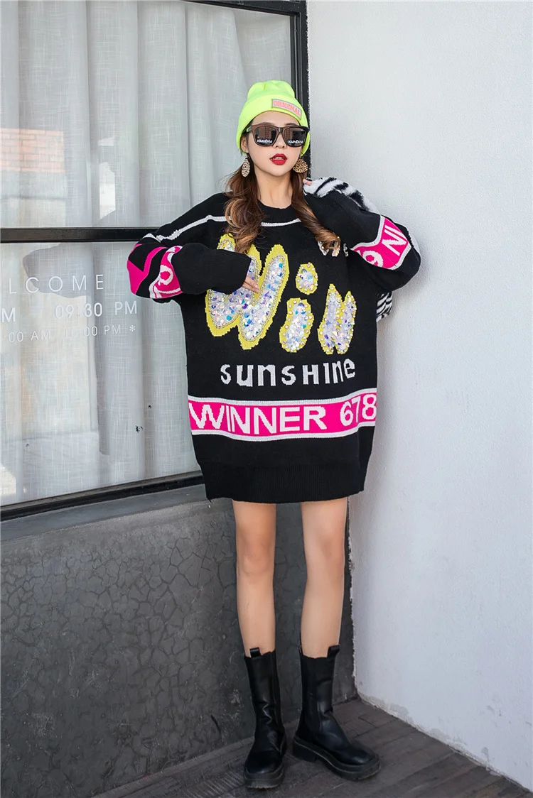 Свитер Vefadisa с Черными Блестками с буквенным принтом, женский осенне-зимний плотный пуловер 2021, вязаное пальто, женское Повседневное трикотажное пальто QYF4726