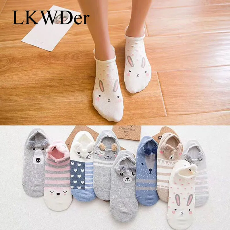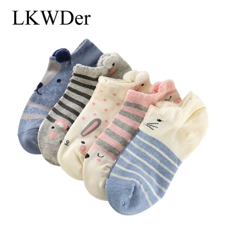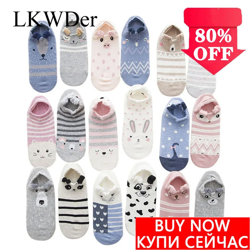 Носки женские LKWDer, хлопковые, с милыми животными, летние, мягкие, забавная лодка